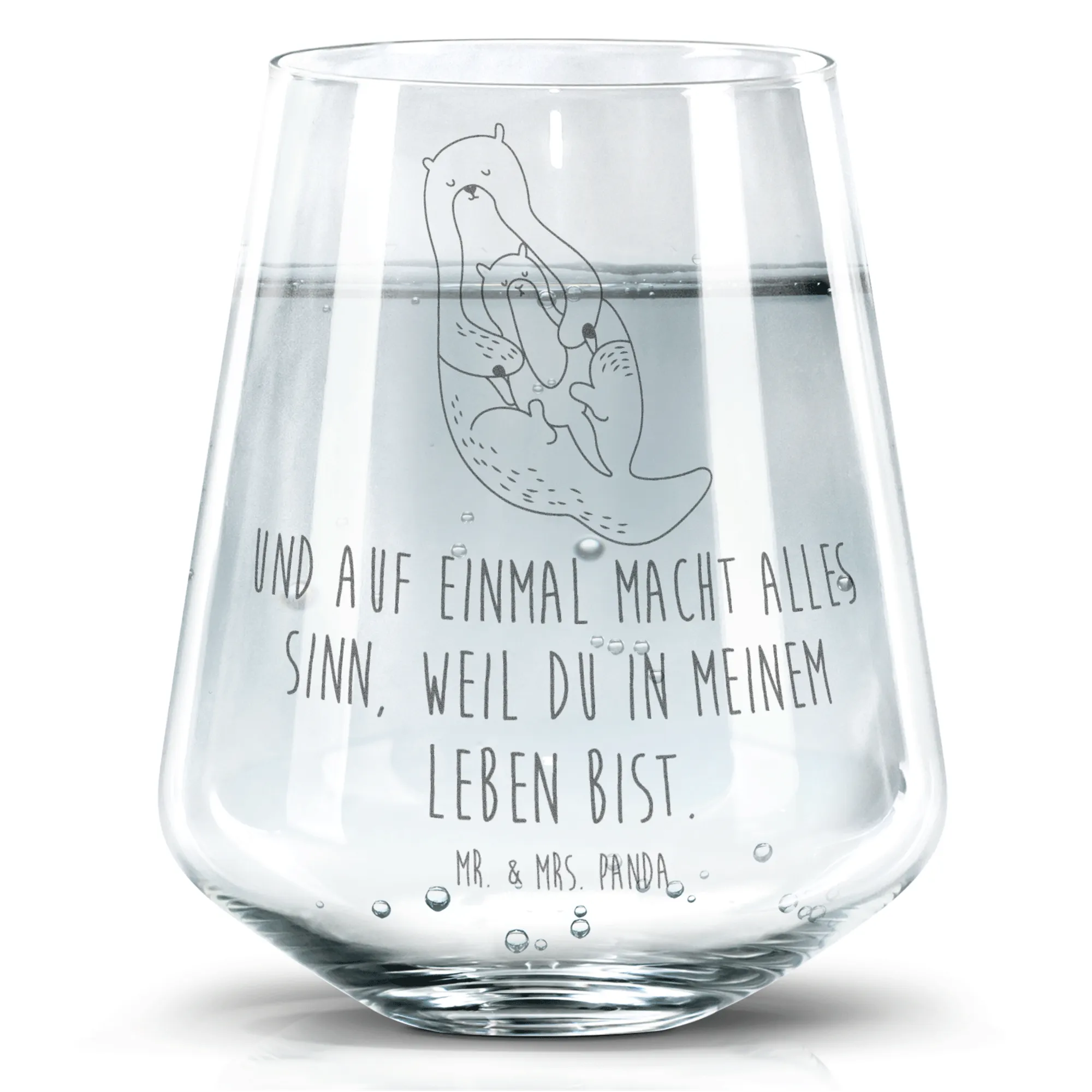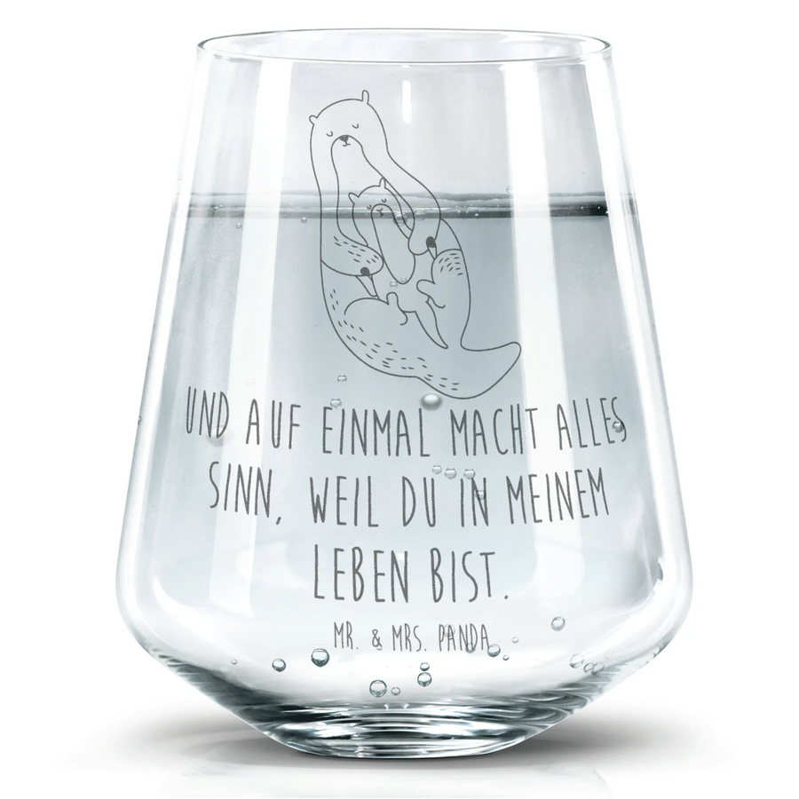 Das Trinkglas mit dem niedlichen Otter-Motiv von Mr. & Mrs. Panda ist das ideale Geschenk für alle Tierliebhaber und besonders für Familien! Es erzählt eine Geschichte voller Liebe und Geborgenheit, veranschaulicht durch den süßen Otter mit seinem Kind. Hier wird jeder Schluck zum Erlebnis! Ob für frisches Wasser, Saft oder einfach nur als dekoratives Element - dieses hochwertige Trinkglas ist vielseitig einsetzbar.