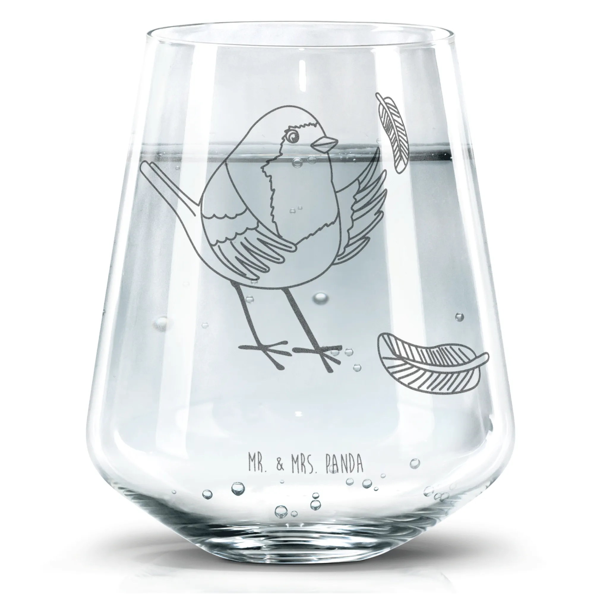 Trinkglas Rotkehlchen Federn - mit Spruch