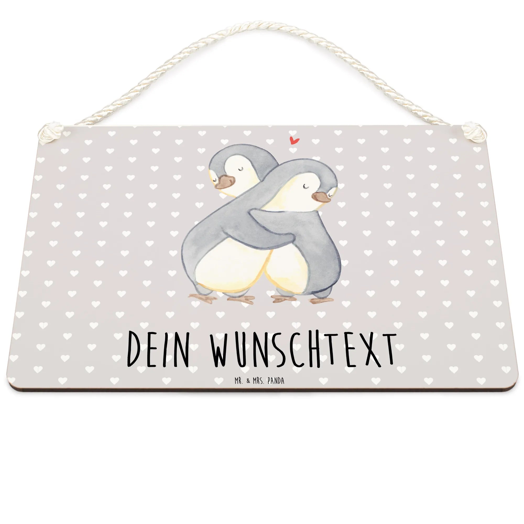 Türschild personalisiert Pinguine Kuscheln - DIN A6 - Weiß