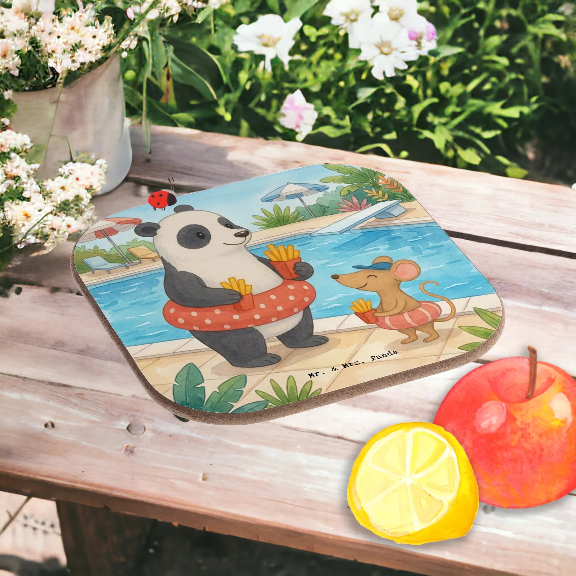 Untersetzer für Gläser Panda Schwimmbad Pommes Design – Mr. & Mrs. Panda