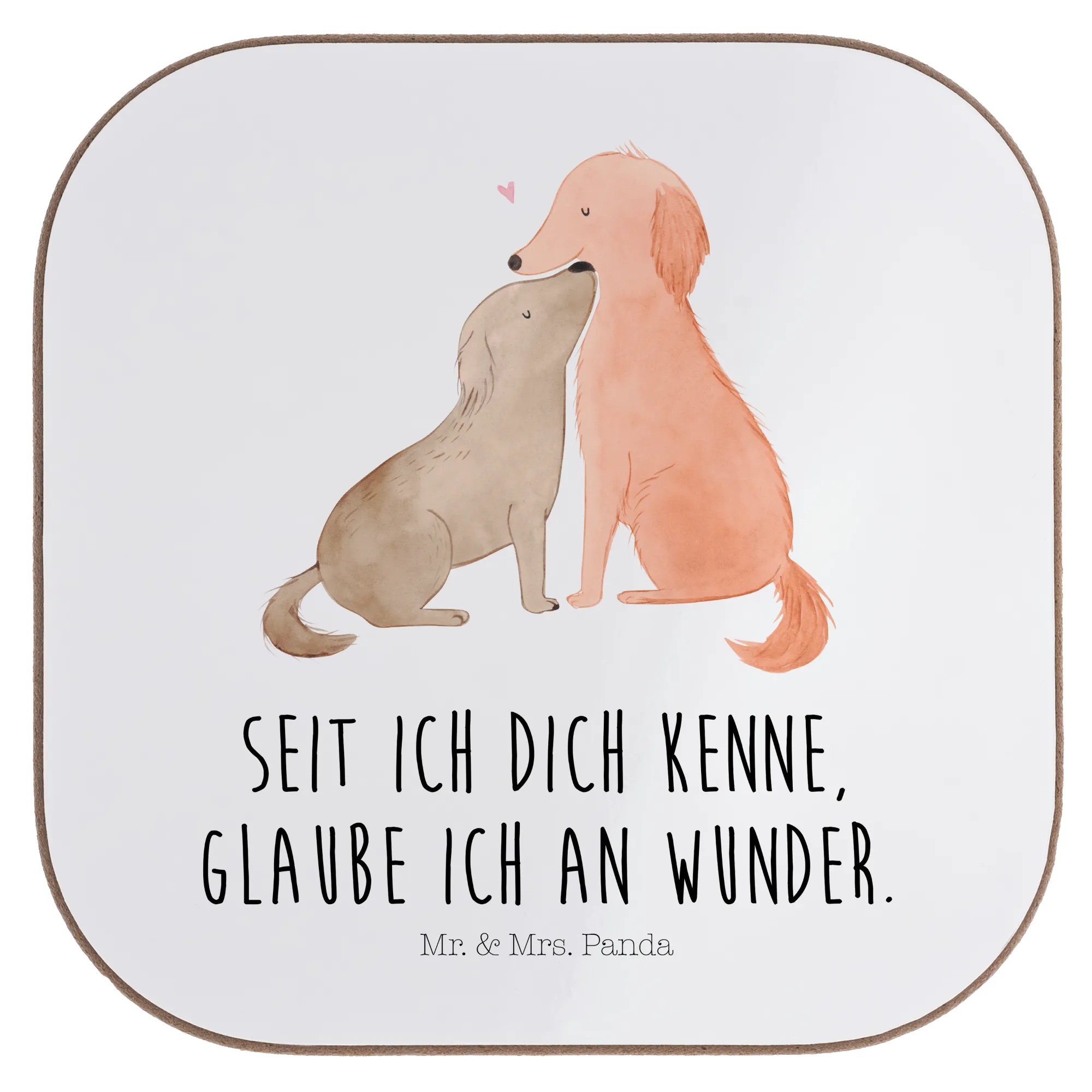 Urbane Hunde Liebe – kuschelnde Hunde mit dem Slogan: Seit ich dich kenne, glaube ich an Wunder.