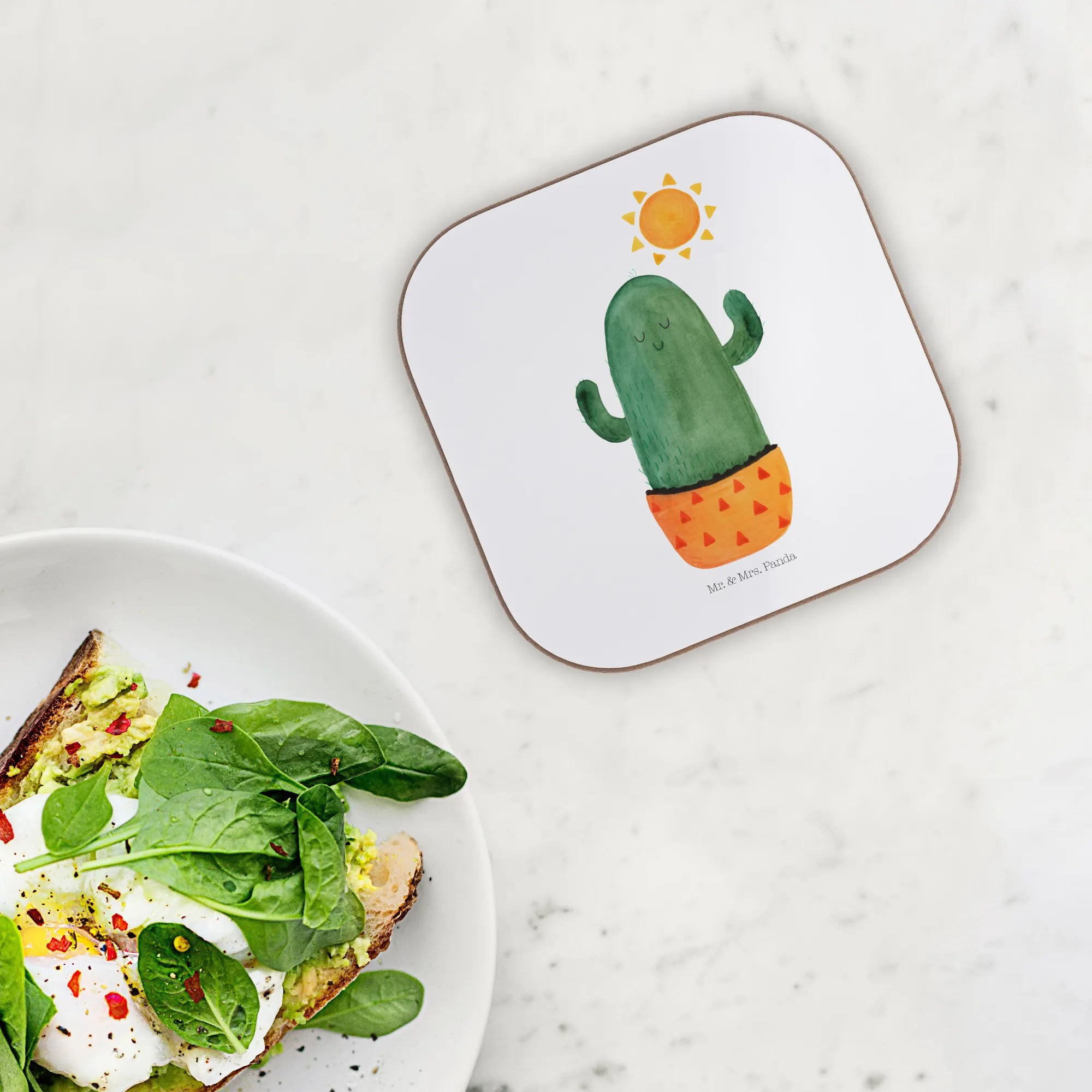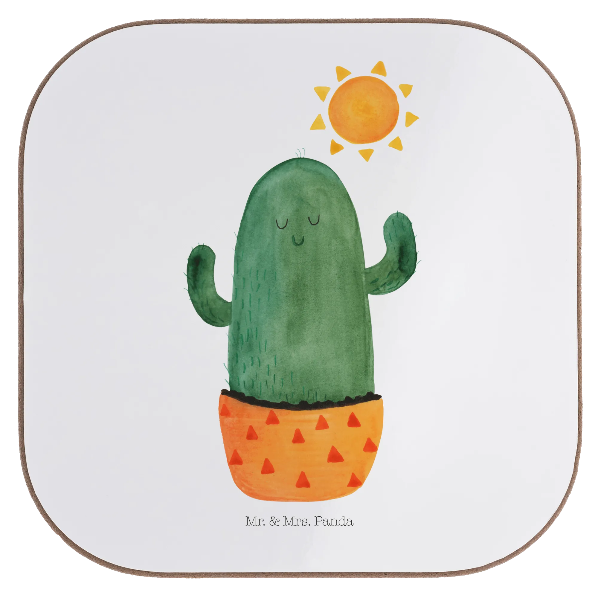 Ein wunderschöner quadratischer Untersetzer aus der Kaktus-Kollektion von Mr. & Mrs. Panda ist das perfekte Geschenk für alle, die die Sonne und das gute Leben lieben! Dieser Untersetzer mit dem fröhlichen Motiv des Kaktus Sonnenanbeters bringt Sonne und Glück in jedes Zuhause.