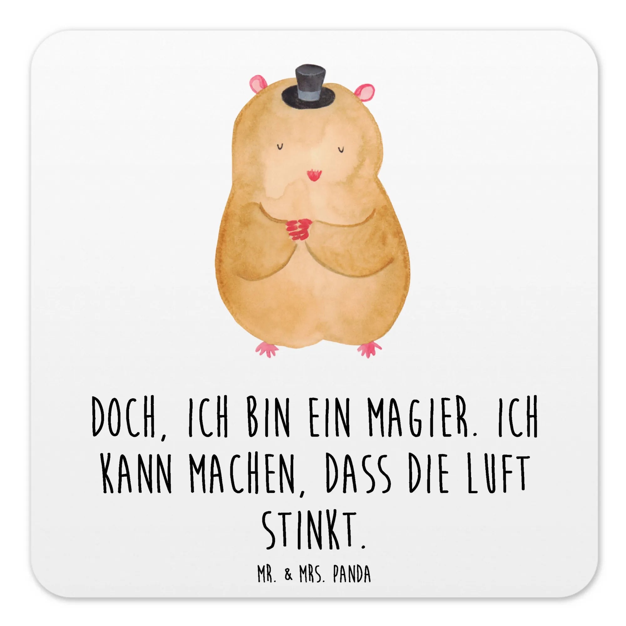 Hast du jemals einen Hamster gesehen, der die Welt zaubert? Mr. & Mrs. Panda präsentieren einen charmanten kleinen Zwerghamster als Meistermagier. Mit einem Zylinder als sein Markenzeichen und verspielt gefalteten Pfötchen, erinnert er uns daran, dass wahre Magie in der Einfachheit liegt. 'Doch, ich bin ein Magier. Ich kann machen, dass die Luft stinkt.' Mit diesem Spruch bringt unser kleiner Zauberer die Leichtigkeit und Freude in unseren Alltag zurück. Ein einfaches Lächeln oder ein kleiner Streich können den Tag erhellen und uns daran erinnern, dass wir alle dazu fähig sind, Magie zu wirken.