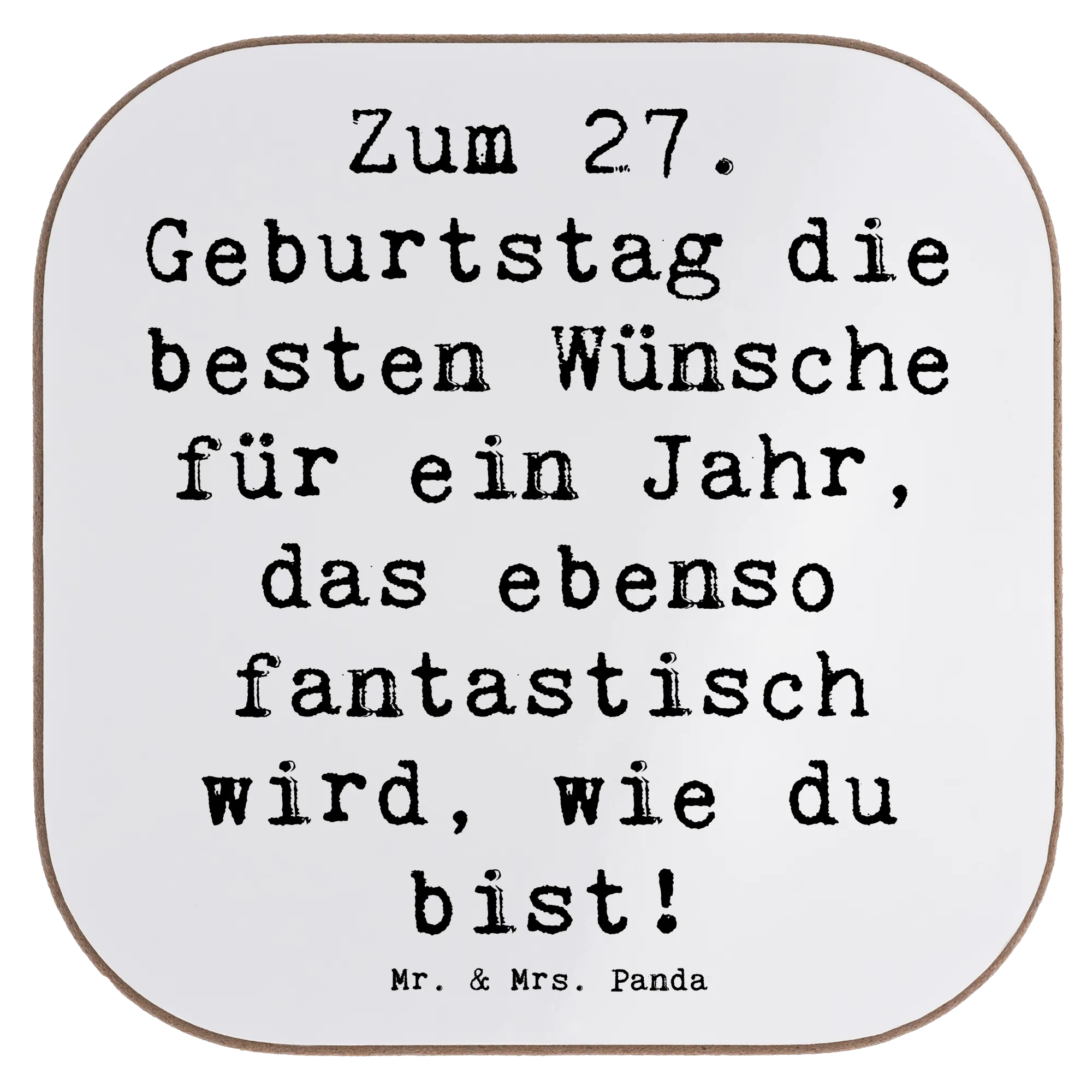 Der wunderschöne Untersetzer zum 27. Geburtstag von Mr. & Mrs. Panda ist das perfekte Geschenk für all die besonderen Menschen in deinem Leben, die diesen besonderen Tag feiern! Mit dem liebevollen Slogan 'Zum 27. Geburtstag die besten Wünsche für ein Jahr, das ebenso fantastisch wird, wie du bist!' bringt dieser stilvolle Untersetzer nicht nur Freude, sondern schützt auch deine Tischoberflächen vor unschönen Abdrücken und Kratzern.