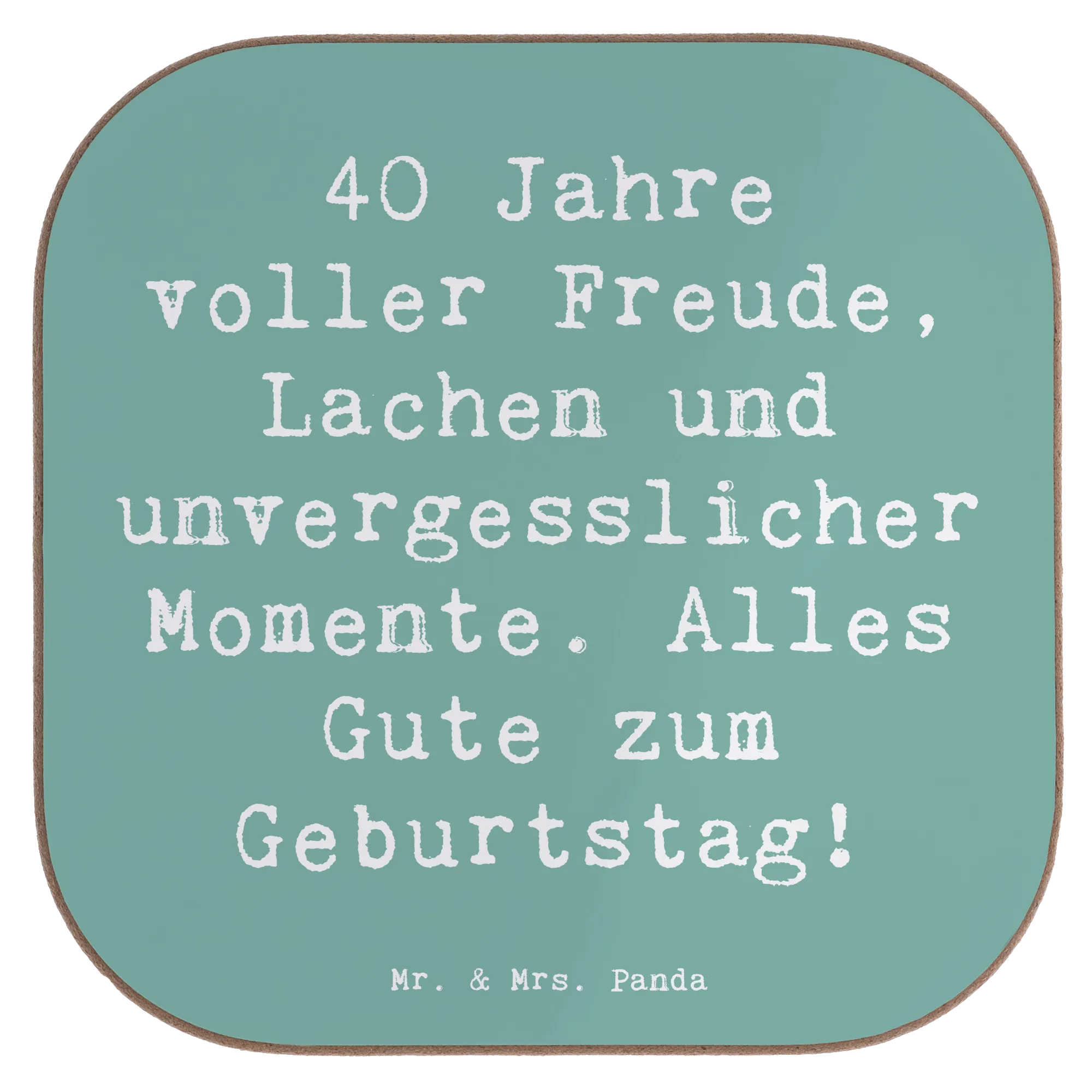 Suchst du das perfekte Geschenk für einen besonderen Menschen, der seinen 40. Geburtstag feiert? Unser Untersetzer mit dem Motto '40 Jahre voller Freude, Lachen und unvergesslicher Momente. Alles Gute zum Geburtstag!' von Mr. & Mrs. Panda ist die ideale Wahl!