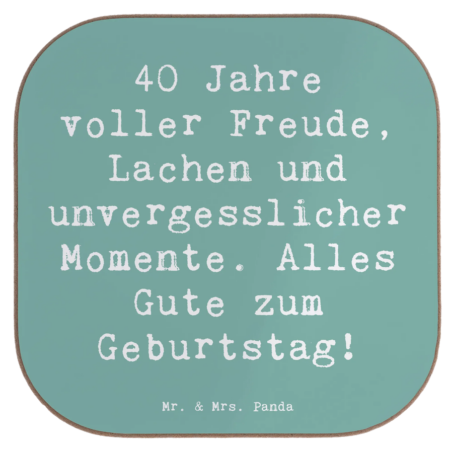 Suchst du das perfekte Geschenk zum 40. Geburtstag? Schau dir diesen wunderschönen quadratischen Untersetzer von Mr. & Mrs. Panda an! Mit dem liebevollen Spruch '40 Jahre voller Freude, Lachen und unvergesslicher Momente. Alles Gute zum Geburtstag!' ist er genau das Richtige, um diesen besonderen Tag all deinen Freunden und Verwandten zu feiern. Egal, ob für die beste Freundin, den Bruder oder deine Eltern – dieser Untersetzer bringt jedem ein Lächeln ins Gesicht!