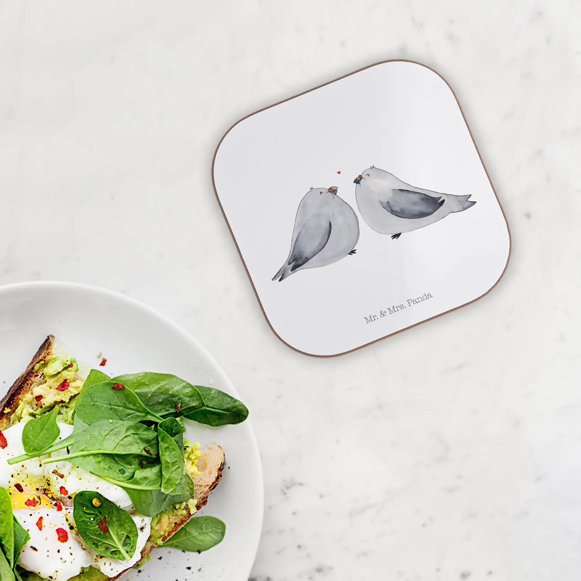 Ein kleines Kunstwerk für die schönsten Momente: Unser quadratischer Untersetzer aus der Hochzeit-Kollektion von Mr. & Mrs. Panda vereint zartes Aquarell, liebevolle Botschaft und praktischen Schutz. Zwei weiße Turteltauben symbolisieren Reinheit und Beständigkeit – perfekt als Geschenk zur Hochzeit, Verlobung oder als romantisches Paargeschenk.