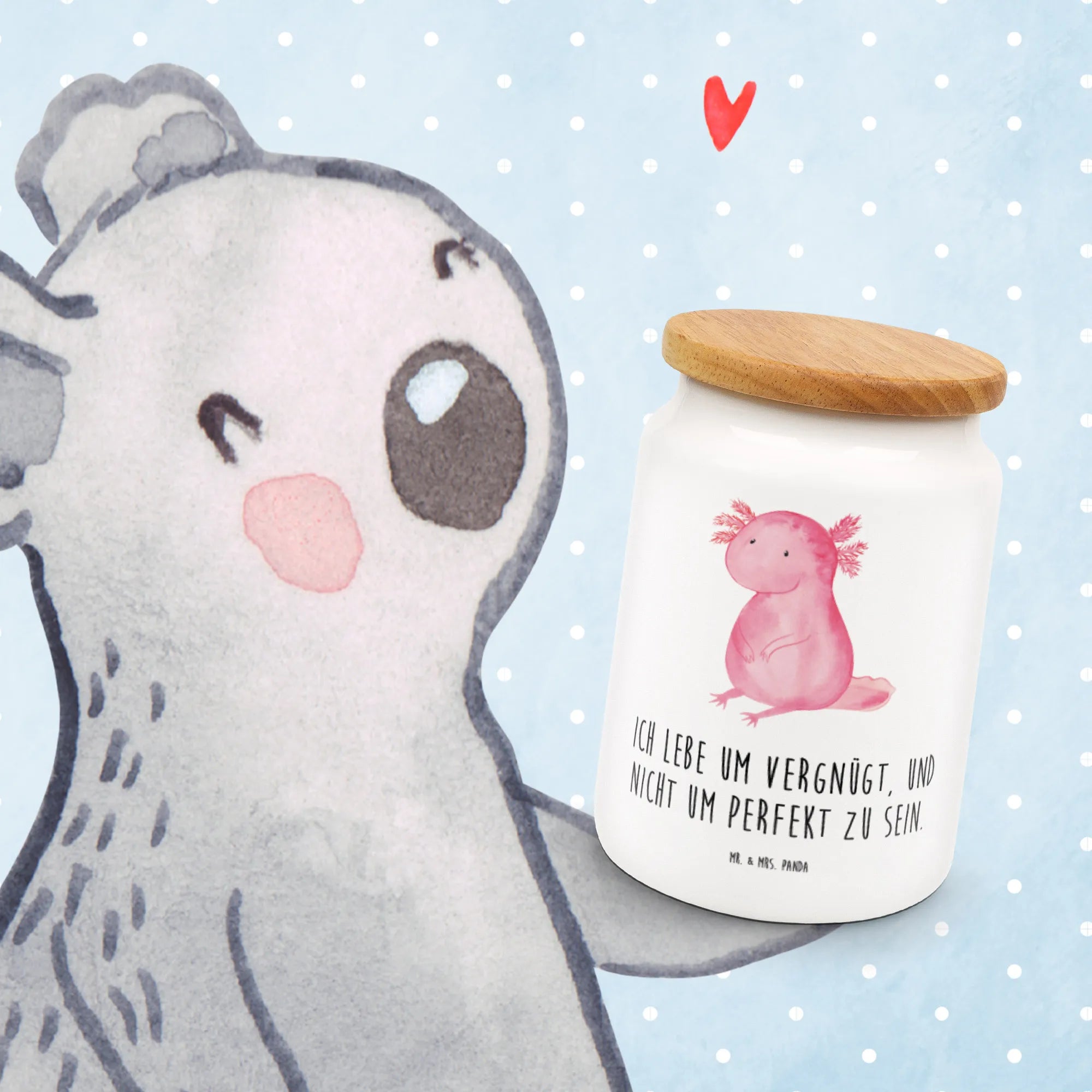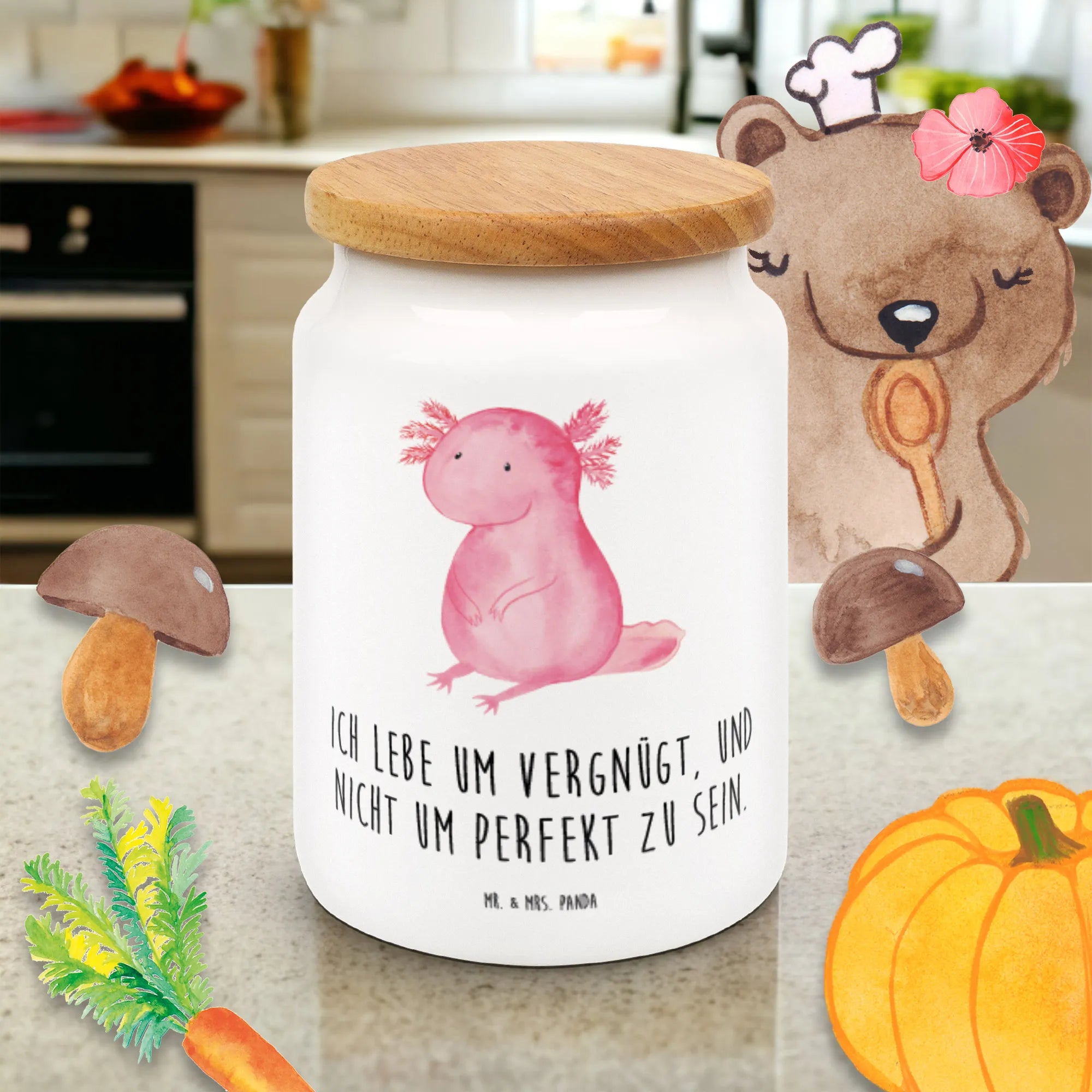 Die liebevolle bedruckte Vorratsdose von Mr. & Mrs. Panda mit dem fröhlichen Axolotl-Motiv ist das perfekte Geschenk für alle, die ein bisschen Lebensfreude und gute Laune in ihre Küche bringen möchten! Standfest und charmant, zeigt sie einen süßen Axolotl, der mit einem breiten Lächeln präsentiert wird und den Slogan "Ich lebe um vergnügt, und nicht um perfekt zu sein." Diese Botschaft ist ideal für Freunde, die es lieben, das Leben unbeschwert zu genießen.