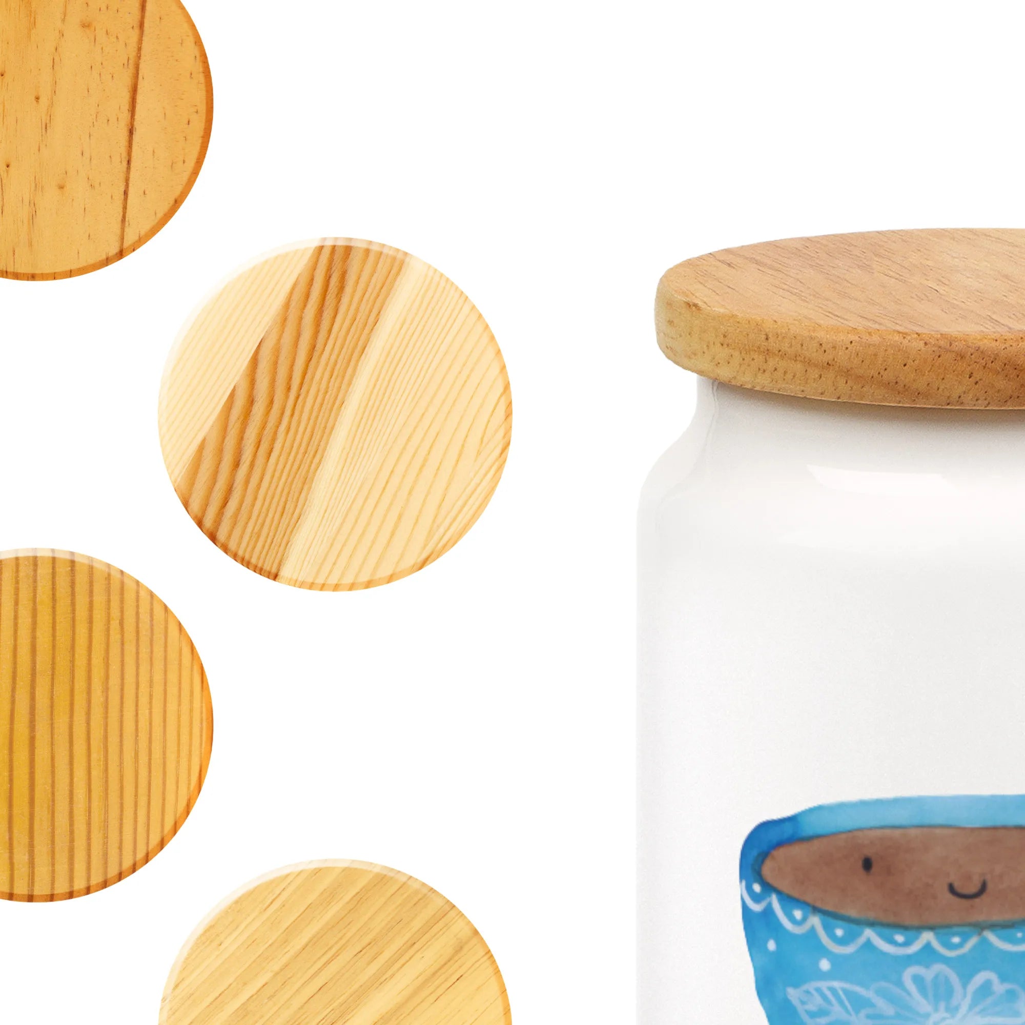 Schau dir die bezaubernde Vorratsdose von Mr. & Mrs. Panda an, die jedem Küchenschrank ein wenig Magie verleiht! Sie hat eine Höhe von 145 mm, einen Durchmesser von 95 mm und fasst 650 ml. Ideal zur Aufbewahrung von Keksen, Süßigkeiten oder auch Gewürzen. Die Motive und Sprüche von Mr. & Mrs. Panda sind mit einem brillanten Druck auf hochwertiger Keramik gearbeitet, was nicht nur schön aussieht, sondern auch langlebig ist. Der massive Holzdeckel sorgt mit seiner Kunststoffdichtung dafür, dass deine Leckereien frisch bleiben. Der Pflegeaufwand ist minimal, denn die Dose ist spülmaschinengeeignet. Ein wunderbares Geschenk für jeden Anlass oder um deiner eigenen Küche einen ganz besonderen Charme zu verleihen!
