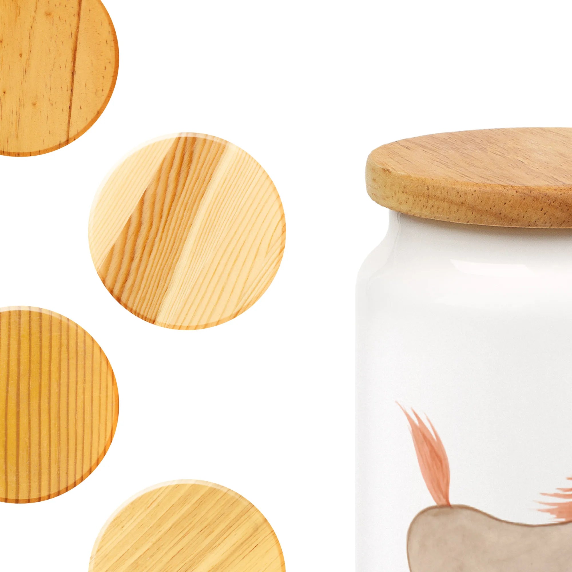 Die Vorratsdose hat nicht nur ein bezauberndes Design, sondern auch eine praktische Funktion. Mit einer Füllmenge von 650 ml eignet sie sich hervorragend zur Aufbewahrung von Leckereien, Keksen oder sogar von wichtigen Küchenzutaten wie Mehl oder Zucker. Der solide Holzdeckel und die Kunststoffdichtung sorgen dafür, dass alles frisch bleibt und vor Motten und anderen Schädlingen geschützt ist.