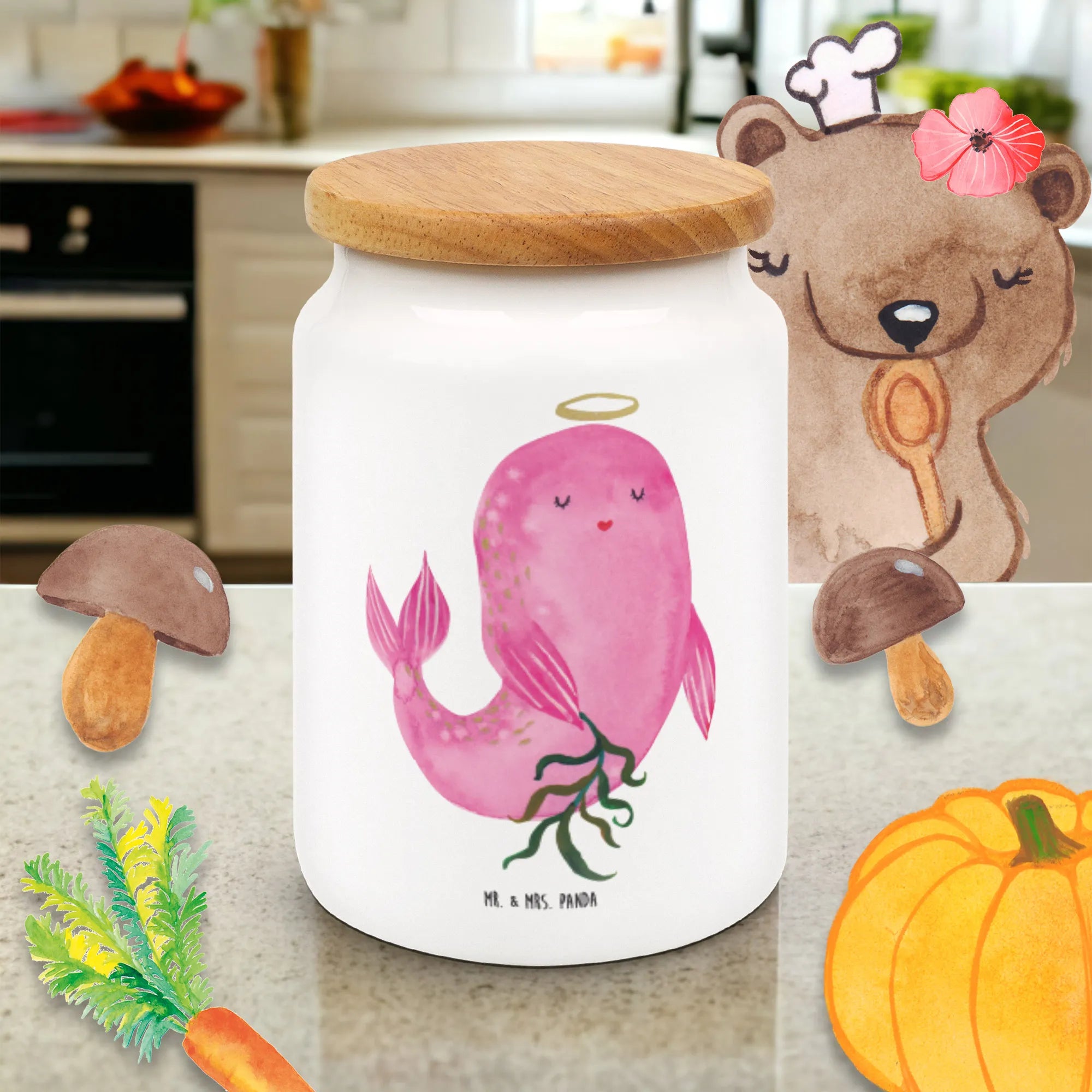 Schau dir die bezaubernde Vorratsdose von Mr. & Mrs. Panda an, die jedem Küchenschrank ein wenig Magie verleiht! Sie hat eine Höhe von 145 mm, einen Durchmesser von 95 mm und fasst 650 ml. Ideal zur Aufbewahrung von Keksen, Süßigkeiten oder auch Gewürzen. Die Motive und Sprüche von Mr. & Mrs. Panda sind mit einem brillanten Druck auf hochwertiger Keramik gearbeitet, was nicht nur schön aussieht, sondern auch langlebig ist. Der massive Holzdeckel sorgt mit seiner Kunststoffdichtung dafür, dass deine Leckereien frisch bleiben. Der Pflegeaufwand ist minimal, denn die Dose ist spülmaschinengeeignet. Ein wunderbares Geschenk für jeden Anlass oder um deiner eigenen Küche einen ganz besonderen Charme zu verleihen!