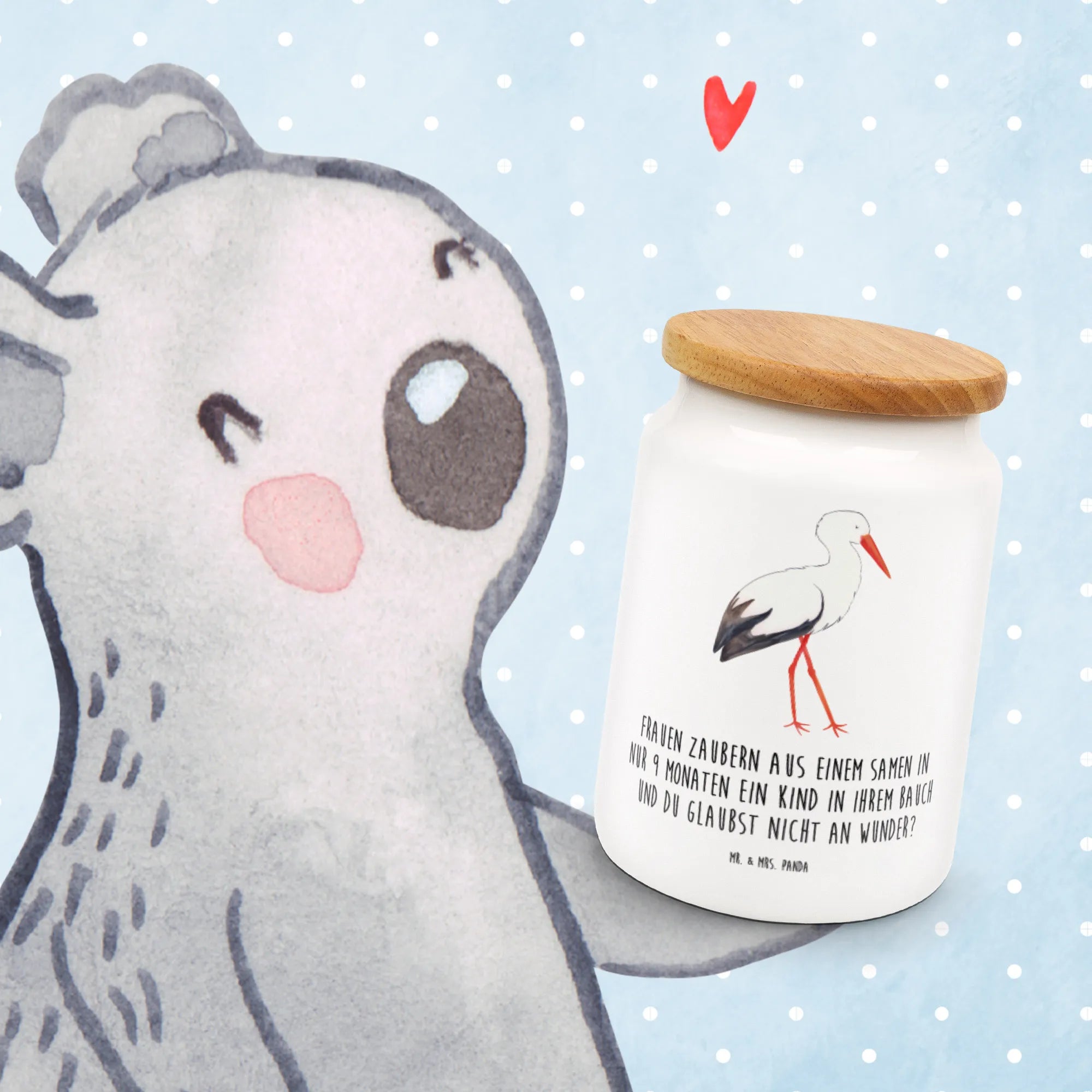 Stelle dir vor, du schenkst das perfekte Geschenk für werdende Mütter oder frisch gebackene Eltern: Die liebevoll bedruckte Vorratsdose mit dem lustigen Storch-Motiv aus der beliebten Small World Kollektion von Mr. & Mrs. Panda ist ein echter Hingucker und ideal für jeden Anlass!