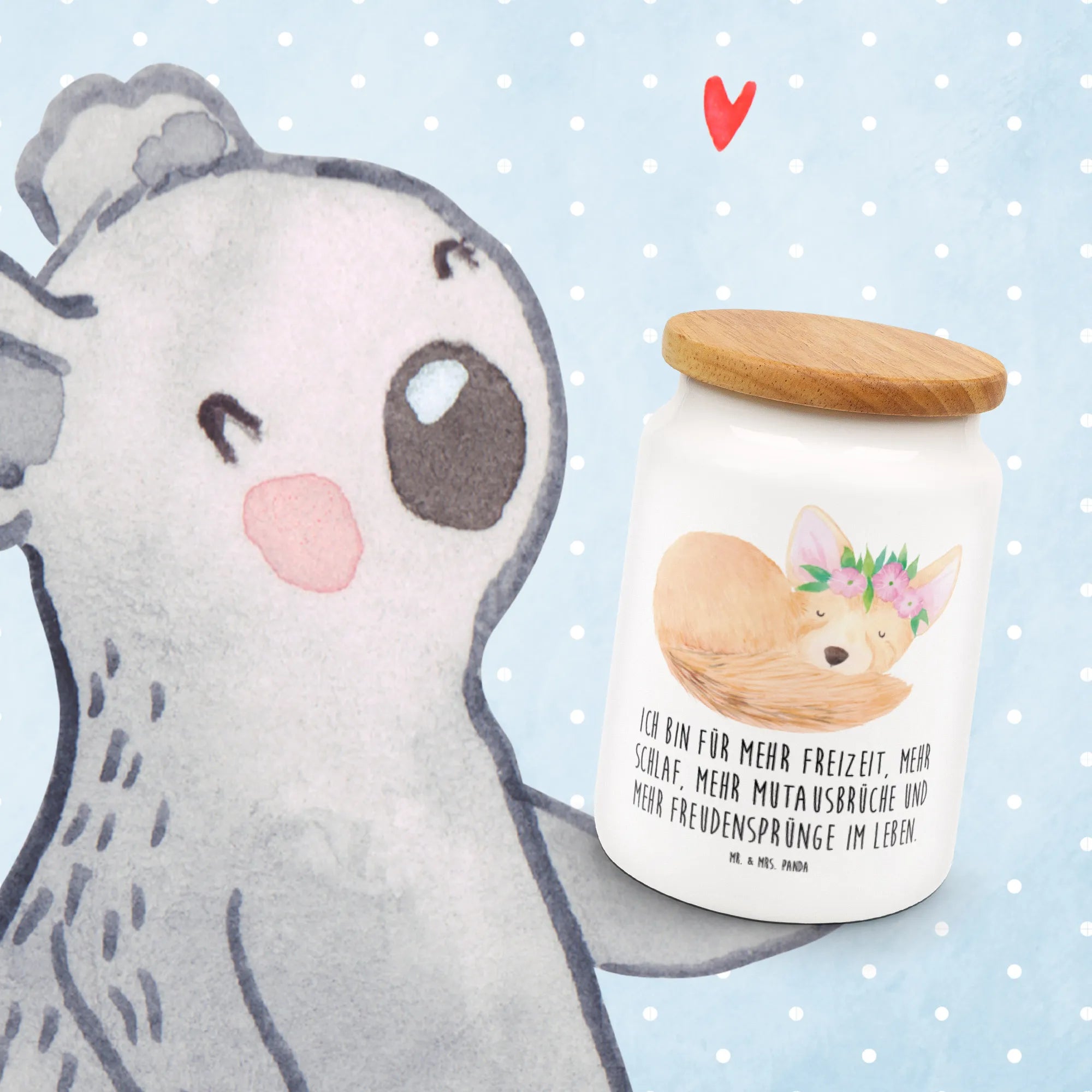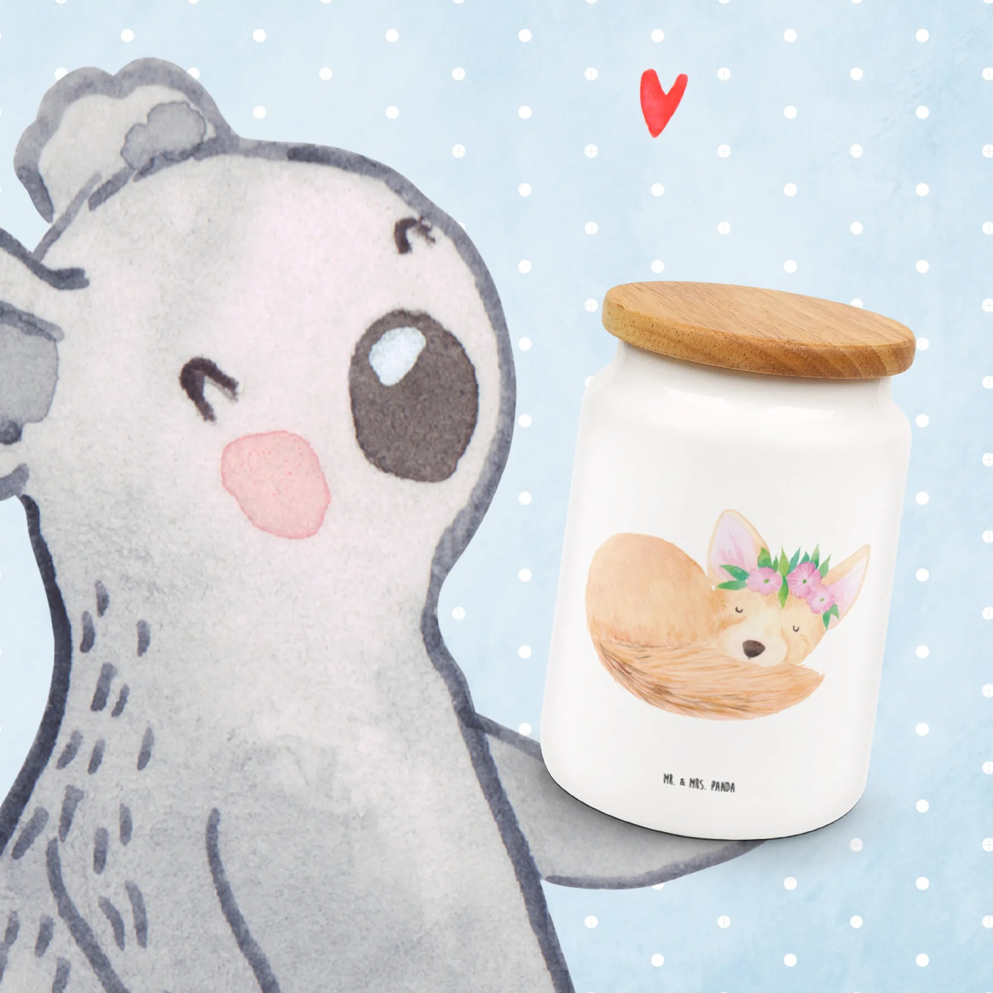 Bist du auf der Suche nach einem besonderen Geschenk für einen Afrika-Liebhaber oder einen Freund, der das Besondere schätzt? Dann ist die liebevoll bedruckte Vorratsdose mit dem bezaubernden Motive "Wüstenfuchs Blumenkranz" von Mr. & Mrs. Panda genau das Richtige für dich!
