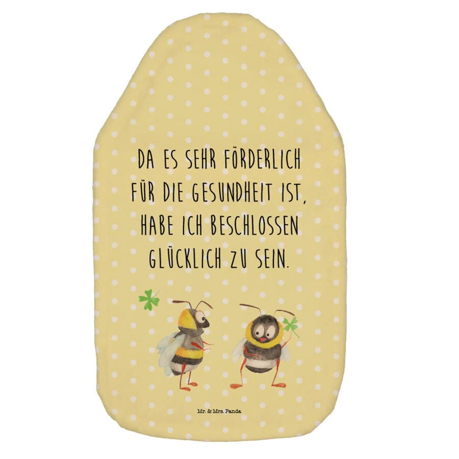 Wärmflasche Hummeln mit Kleeblatt - mit Spruch - Gelb Pastell