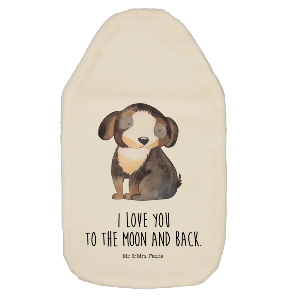 Entdecke die perfekte Wohlfühlbegleitung mit unserer wunderschönen Wärmflasche "Hund entspannt" aus der Hunde Kollektion von Mr. & Mrs. Panda!