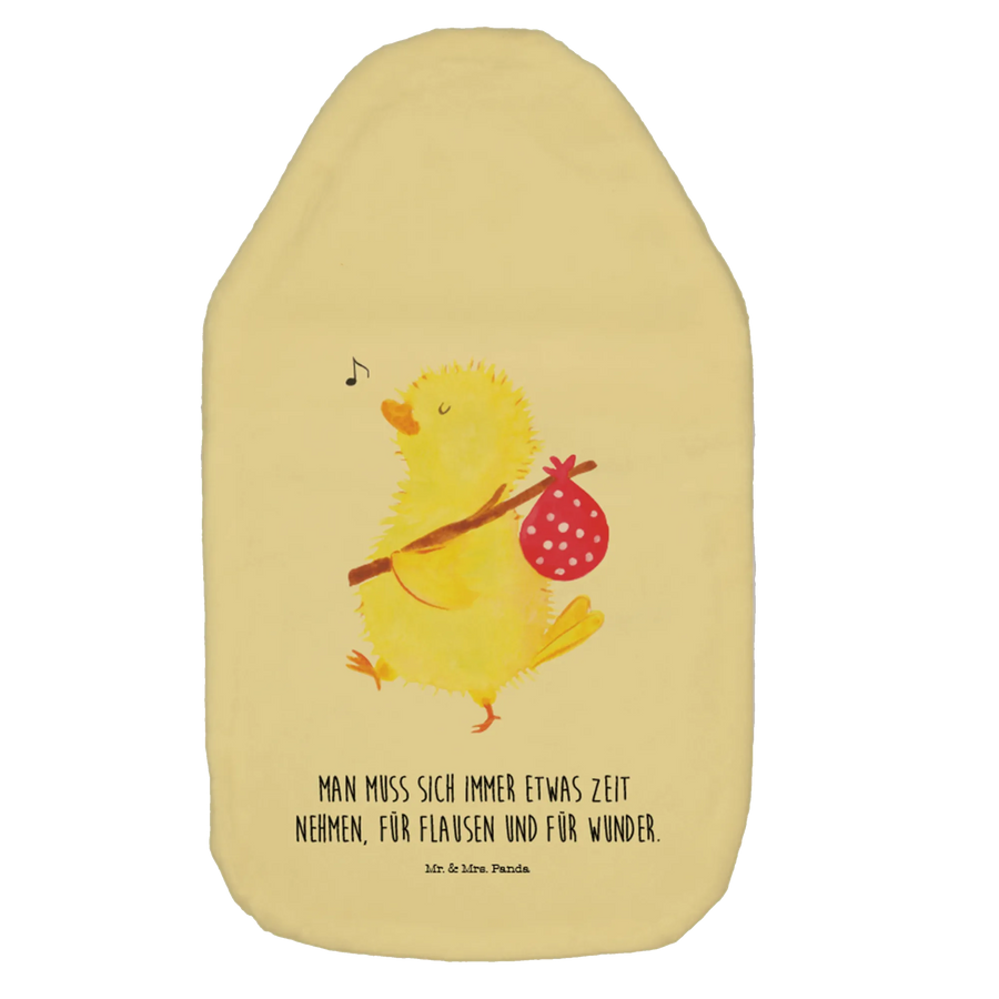 Wärmflasche Küken Wanderer - mit Spruch - Gelb Pastell