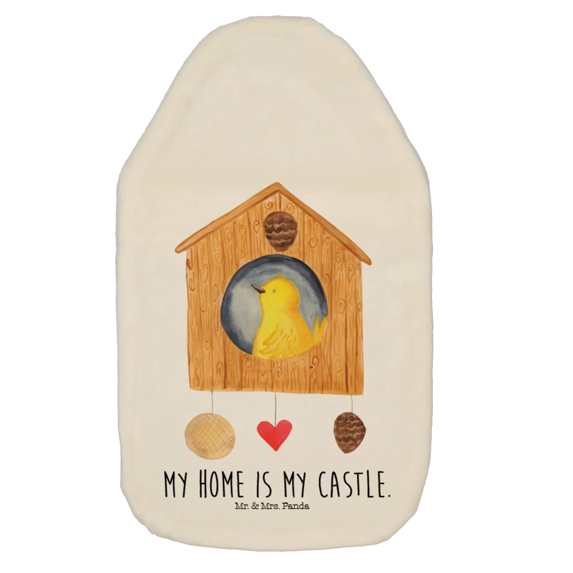 Wärmflasche Vogelhaus - mit Spruch - Gelb Pastell
