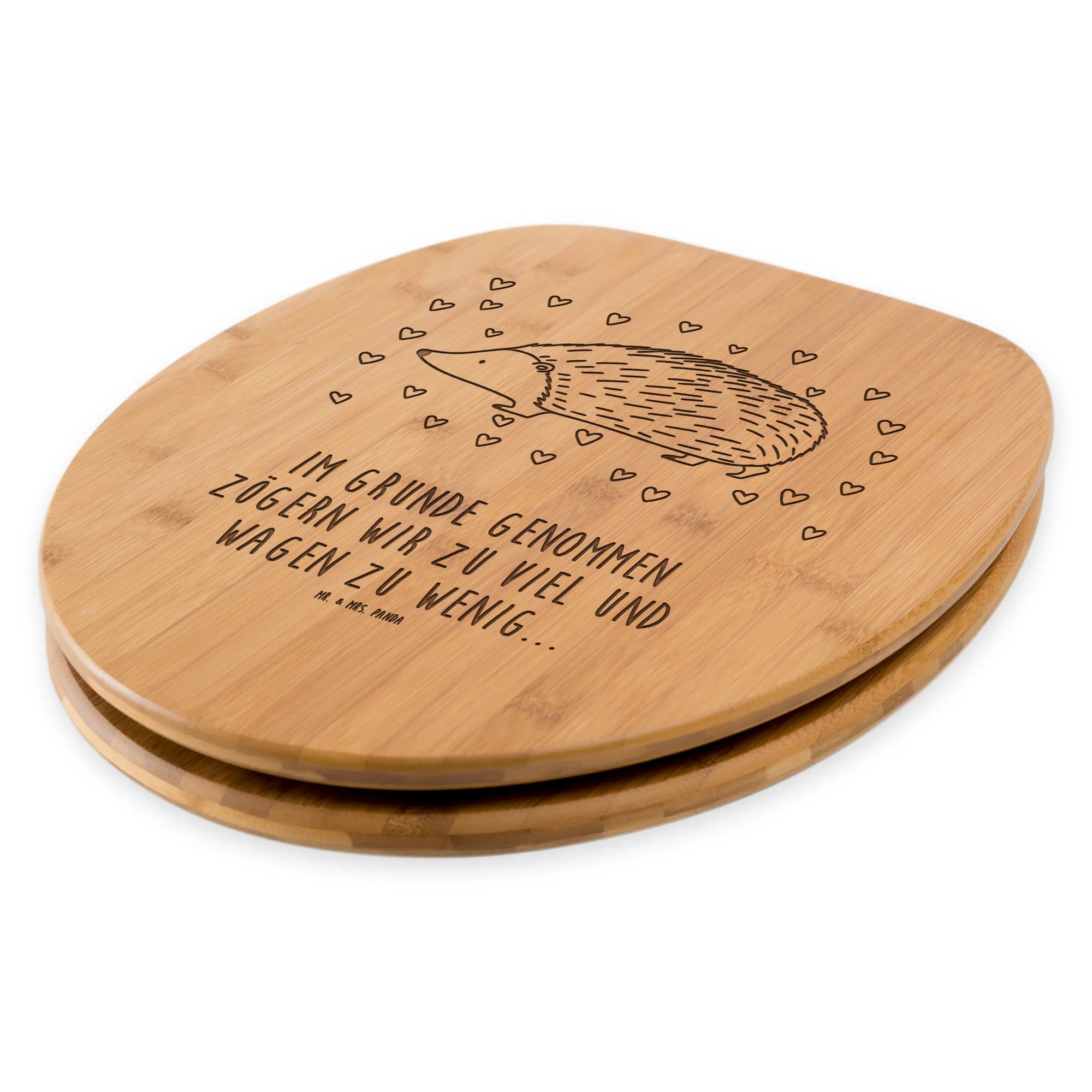Der Mr. & Mrs. Panda WC Sitz bringt echtes Flair in dein Bad! Mit seinen charmanten Motiven und Sprüchen wird er der Mittelpunkt in deiner Toilette. Die Maße von 430 mm x 370 mm x 50 mm machen ihn universell passend. Hergestellt aus braunem Bambus Holz oder weißem MDF Holz, sorgt dieser Sitz für wohligen Komfort und ist selbst bei kühlen Temperaturen angenehm warm. Langlebiger UV-Druck und versiegeltes Holz gewährleisten, dass du lange Freude an diesem Artikel hast. Die universalen Scharniere erleichtern die Montage und das gesamte Befestigungsmaterial ist im Lieferumfang enthalten. Pflege deinen Toilettensitz ganz einfach mit einem feuchten Tuch und milder Seife. Der Mr. & Mrs. Panda WC Sitz ist das perfekte Geschenk für dich selbst oder deine Lieben!