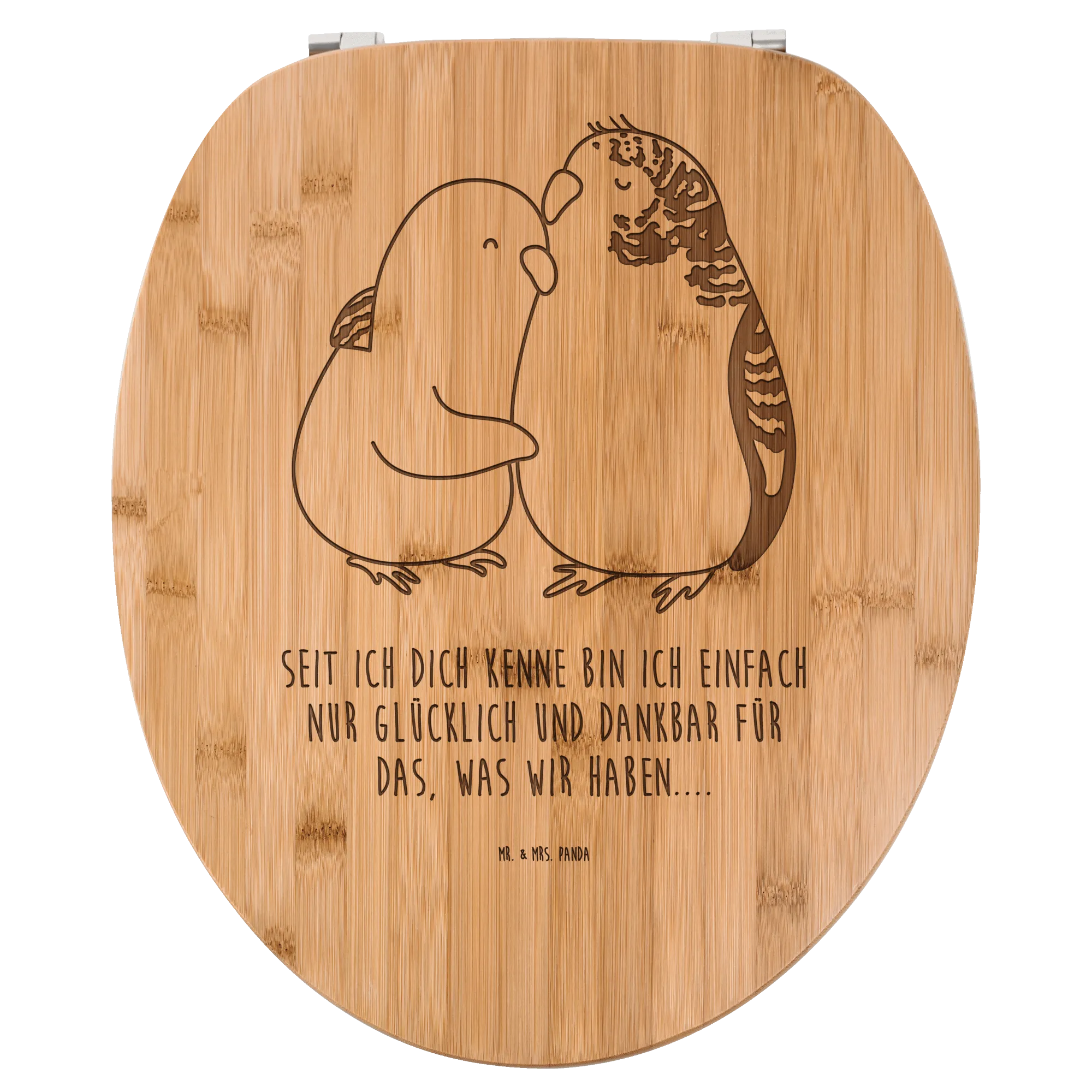 Der Mr. & Mrs. Panda WC Sitz ist nicht nur funktional, sondern auch dekorativ! Mit seinen liebevollen Motiven und Sprüchen ist dieser Toilettensitz ein echter Hingucker in jedem Badezimmer. Die Abmessungen von 430 mm x 370 mm x 50 mm machen ihn passend für die meisten WC-Becken. Geschaffen aus hochwertigem Bambus Holz in braun oder aus weißem MDF, bietet er dir einen hohen Sitzkomfort, auch wenn es kühl ist. Dank des wasserfesten UV-Drucks bleibt das Design lange erhalten. Zudem kannst du ihn dank der einfachen Montage und dem enthaltenen Befestigungsmaterial schnell anbringen. Dein Bad wird mit diesem kreativen WC-Deckel lebendiger und einladender! Ob zur eigenen Nutzung oder als Geschenk, dieser Klo-Sitz ist ein ideales Wohnaccessoire.