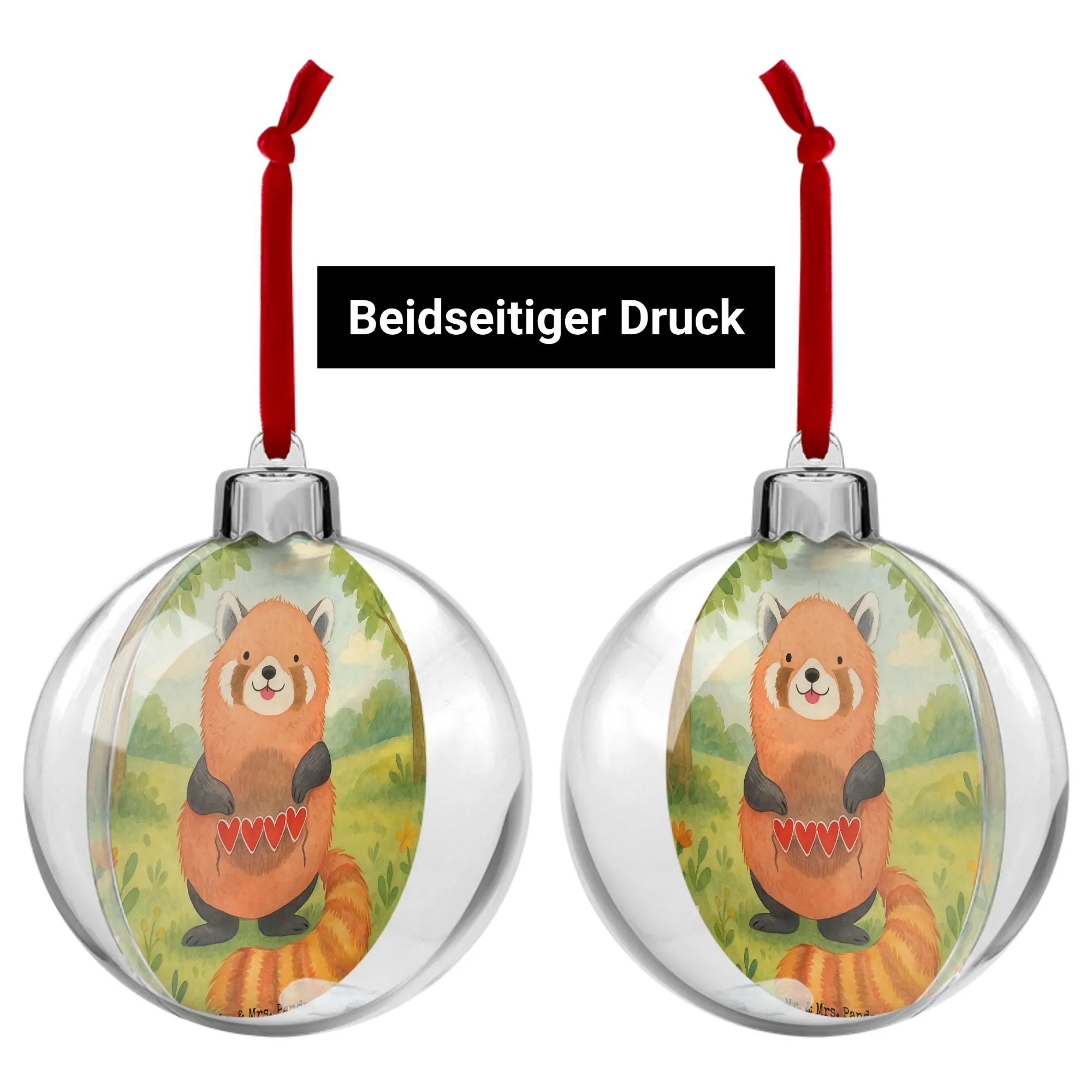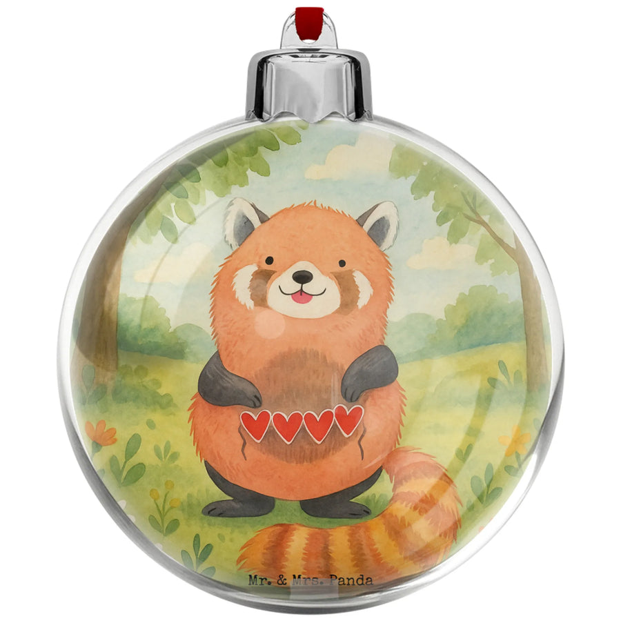 🐼 Transparente Baumkugel mit Panda-Motiv, rotes Band, Ø78 mm.