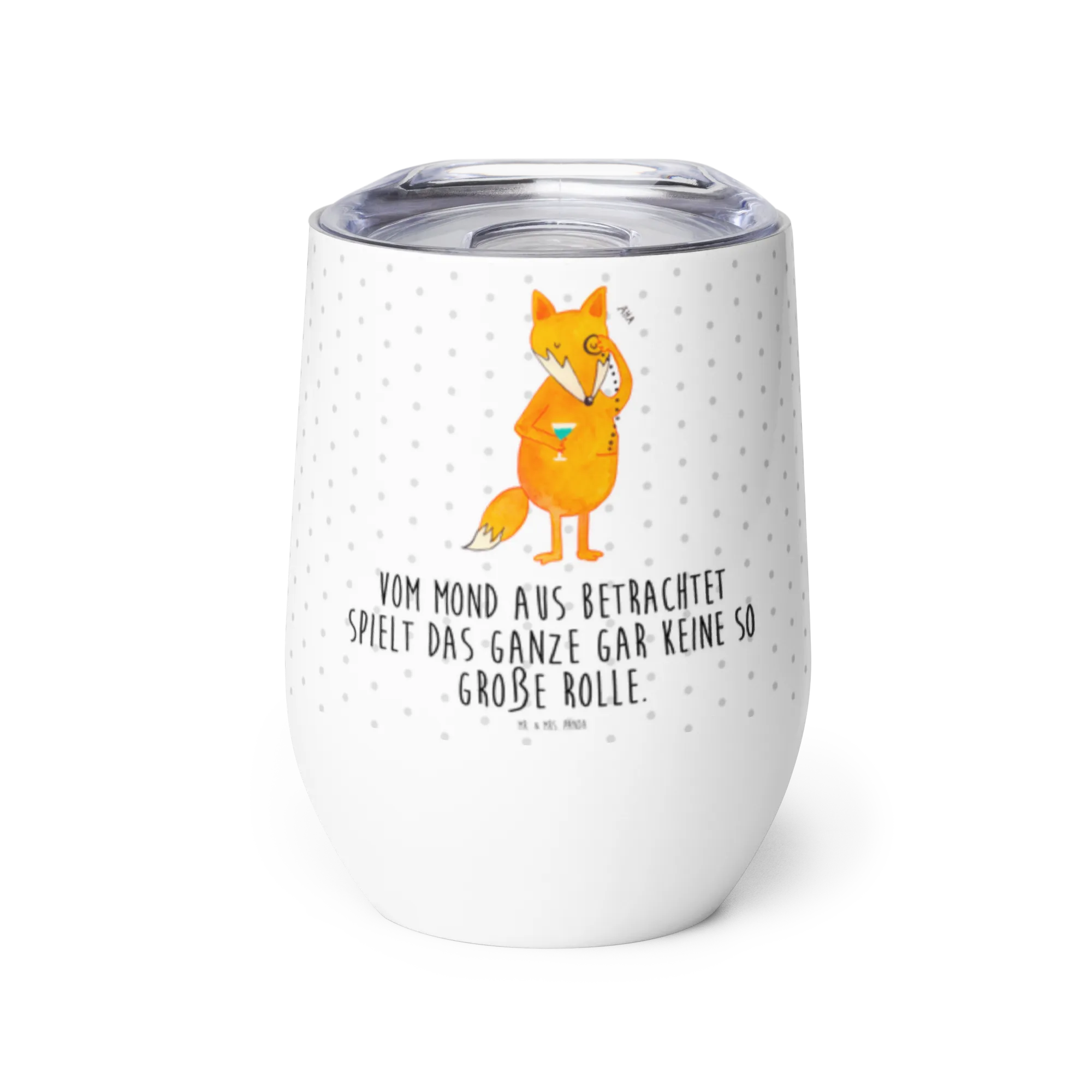 Blickt man vom Mond auf unsere kleinen Sorgen, erscheinen sie oft viel kleiner als sie scheinen. Der charmante Fuchs mit seinem Monokel hilft uns, die Dinge aus einer anderen Perspektive zu sehen. Mit einem Schmunzeln auf den Lippen und einem Augenzwinkern, vermittelt er die Botschaft, dass wir auch die traurigsten Momente mit Humor nehmen sollten. Das Spruch-Motiv "Vom Mond aus betrachtet spielt das Ganze gar keine so große Rolle" ermutigt uns, die Herausforderungen des Lebens mit Leichtigkeit und Freude zu meistern. Wenn Liebeskummer einen mädelsabend ruiniert, bleibt immer noch der Fuchs, um uns daran zu erinnern, dass es keinen Grund gibt, die Hoffnung aufzugeben. Tröstende Worte finden wir hier ebenso wie eine Portion Motivation, die uns durch die schweren Zeiten trägt. Lass diesen stattlichen Fuchs in dein Leben und genieße die positiven Vibes, die er mitbringt!