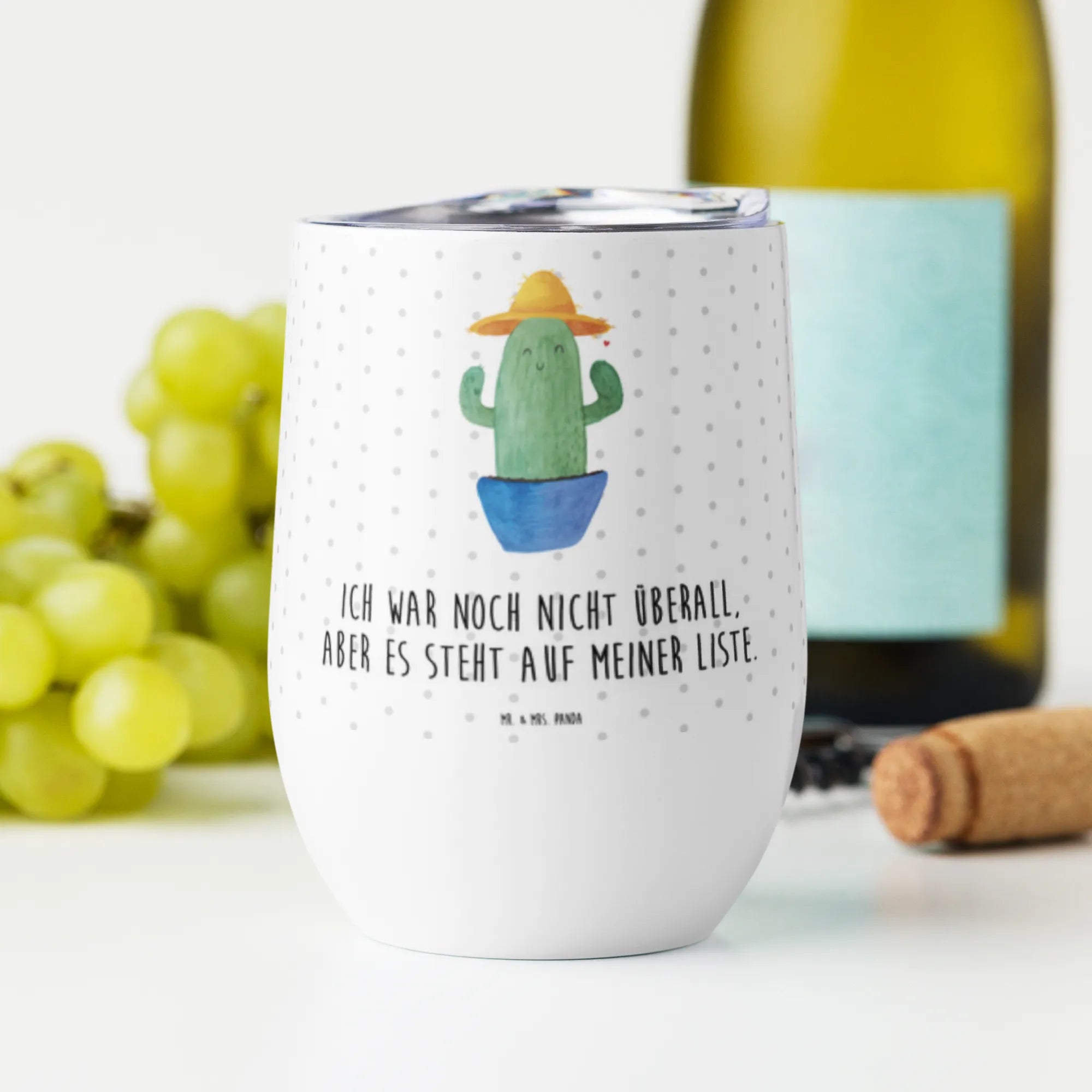 Das fröhliche Kaktus-Motiv mit einem Sonnenhut verleiht deinem Drink eine lebensfrohe Note und macht ihn zu einem tollen Geschenk für Lebenslustige und Weltenbummler. Dieser Weinbecher ist nicht nur ein praktisches Accessoire, sondern auch ein echter Hingucker! Mit der Botschaft "Ich war noch nicht überall, aber es steht auf meiner Liste." inspiriert er immer wieder zur nächsten Reise.