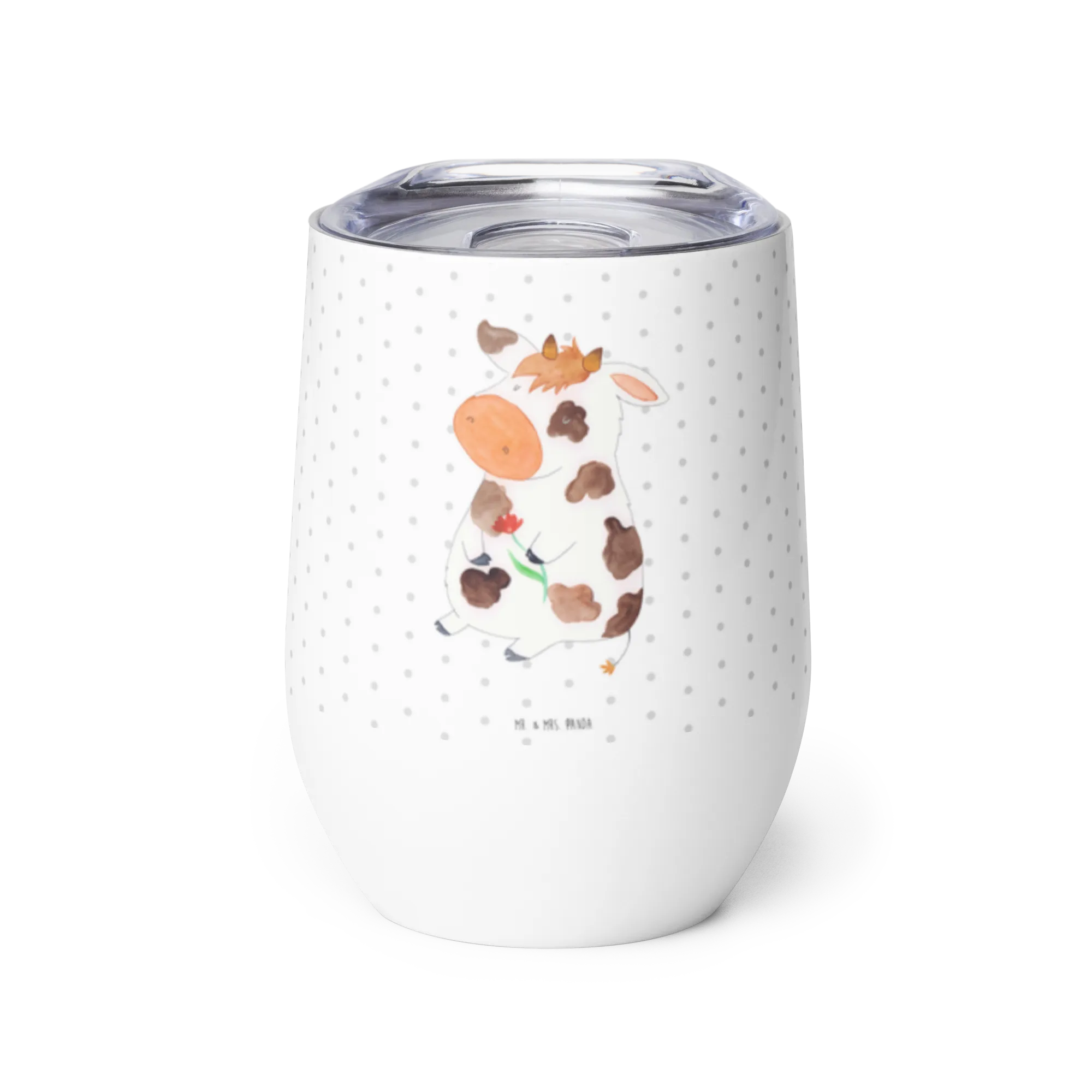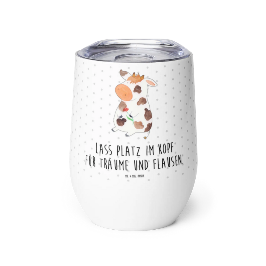 Der wunderschöne Weinbecher im Kuh-Design von Mr. & Mrs. Panda ist das ideale Geschenk für alle Tierliebhaber und Freunde des ländlichen Lebens. Mit einem Motiv, das eine verträumte Kuh darstellt, die stolz ein Teil der "Mr. & Mrs. Panda" Familie ist, erweckt dieser Becher sofort Freude und Gemütlichkeit. Ideal für Glühwein, heißen Kakao oder natürlich einem guten Glas Wein, dieser hochwertige Edelstahl-Becher ist perfekt für entspannte Momente, sei es unterwegs oder zu Hause.