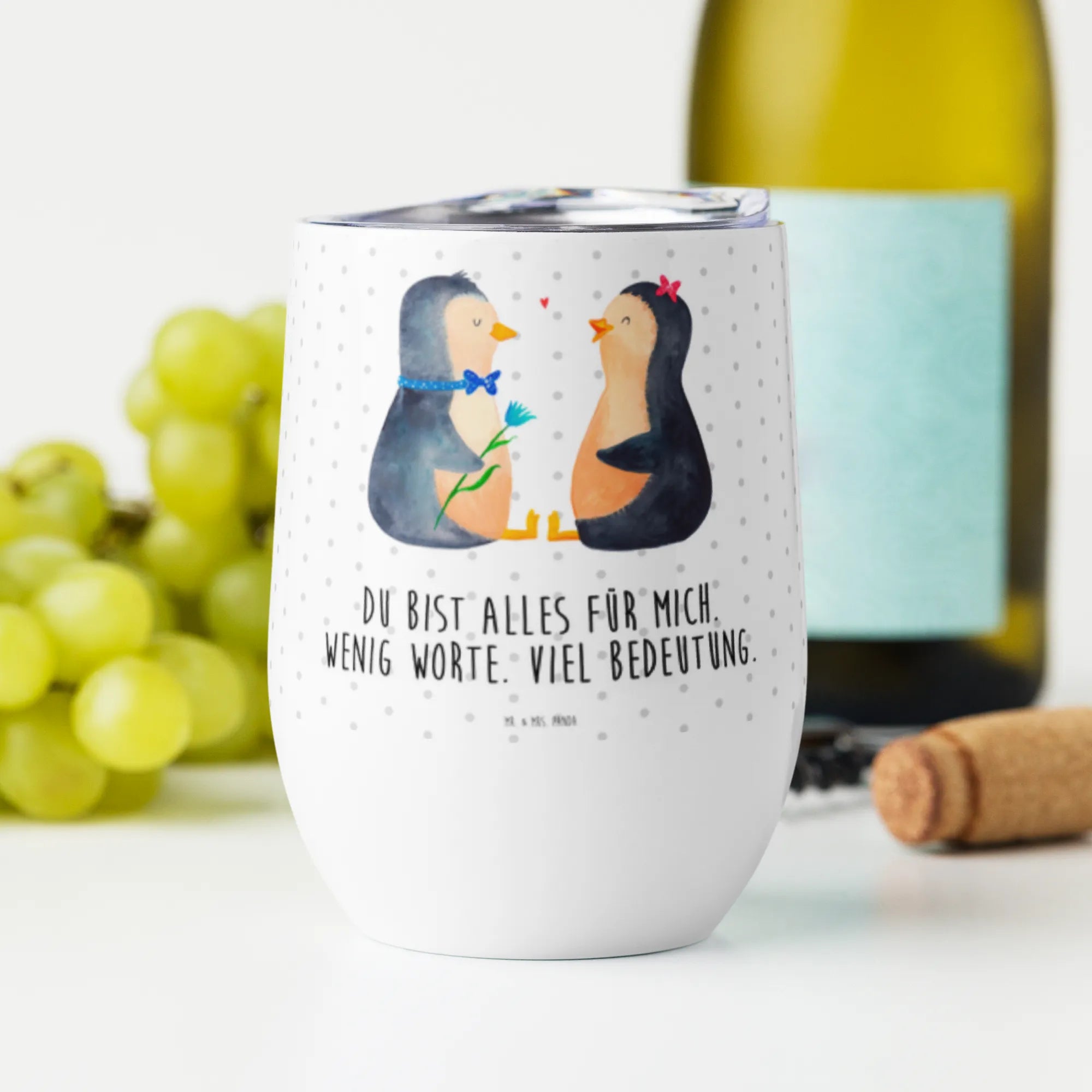 Der stilvolle Weinbecher von Mr. & Mrs. Panda ist die perfekte Wahl für alle, die Genuss und Eleganz lieben! Mit einer Kapazität von 375 ml und einer doppelwandigen Vakuumdichtung sorgt er dafür, dass dein Getränk bis zu 5 Stunden lang warm oder kalt bleibt. Der besondere Charm des Bechers wird durch die süßen Motive und Sprüche von Mr. & Mrs. Panda unterstrichen – ideal für gesellige Abende oder entspannte Momente. Die geschwungene Form des Bechers liegt angenehm in der Hand und macht jede Trinkerfahrung zu einem Vergnügen. Qualitätsstahl garantiert Langlebigkeit und macht ihn zu einem hervorragenden Geschenk für jeden Anlass. Ob für sich selbst oder als Aufmerksamkeit für einen geliebten Menschen - dieser Weinbecher wird zarte Gemüter und Genießer gleichermaßen erfreuen! Er wird an jedem Tisch zum Gesprächsstück und zieht alle Blicke auf sich. Reinige ihn bestenfalls mit der Hand, um lange Freude daran zu haben.