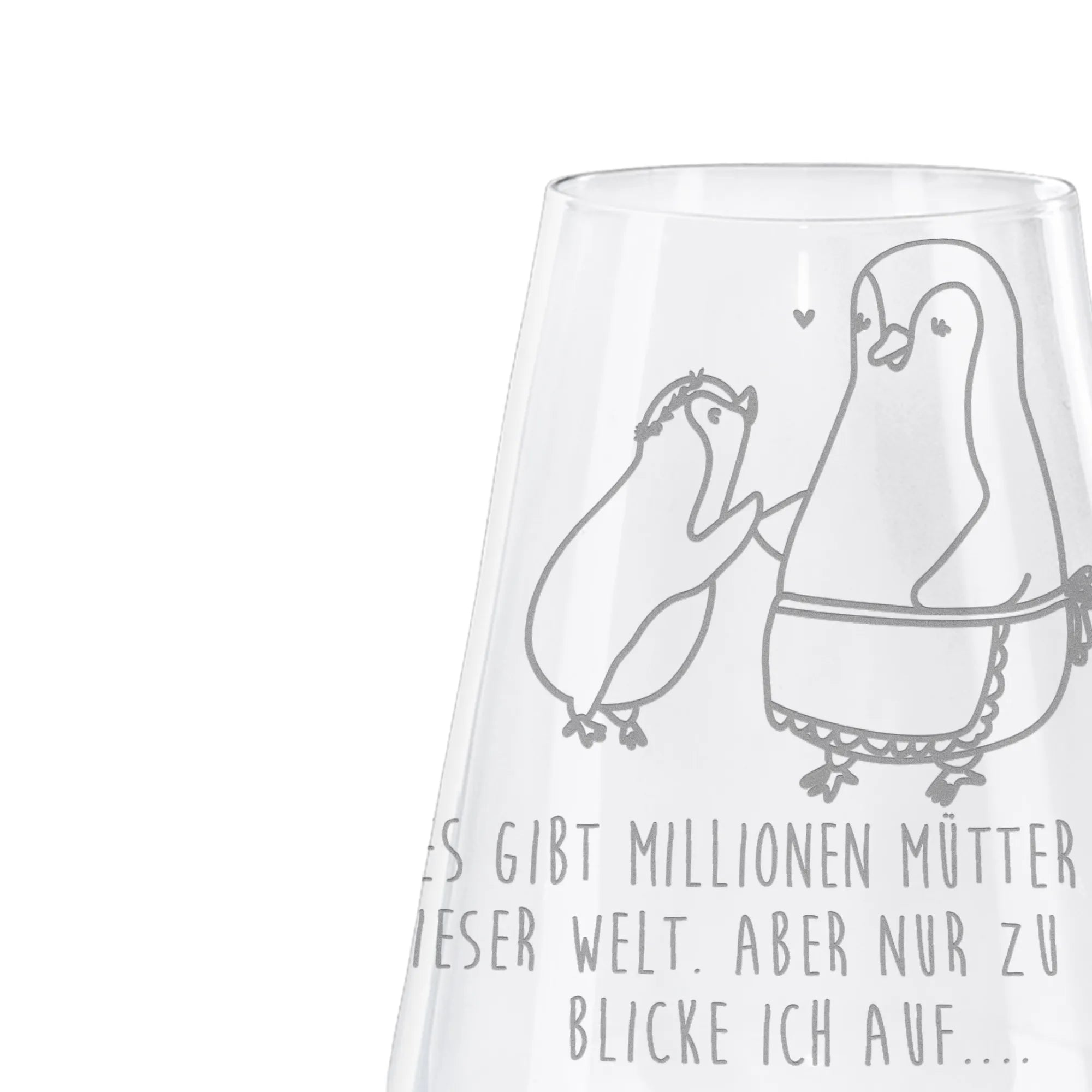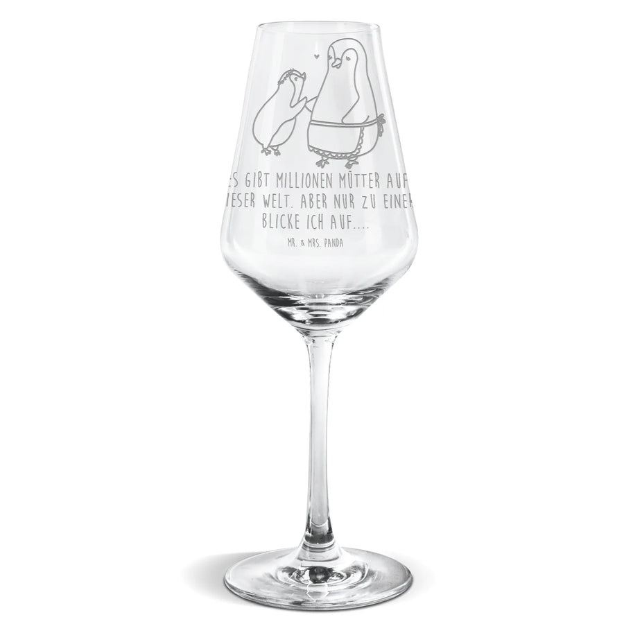 Weißwein Glas Pinguin mit Kind - mit Spruch