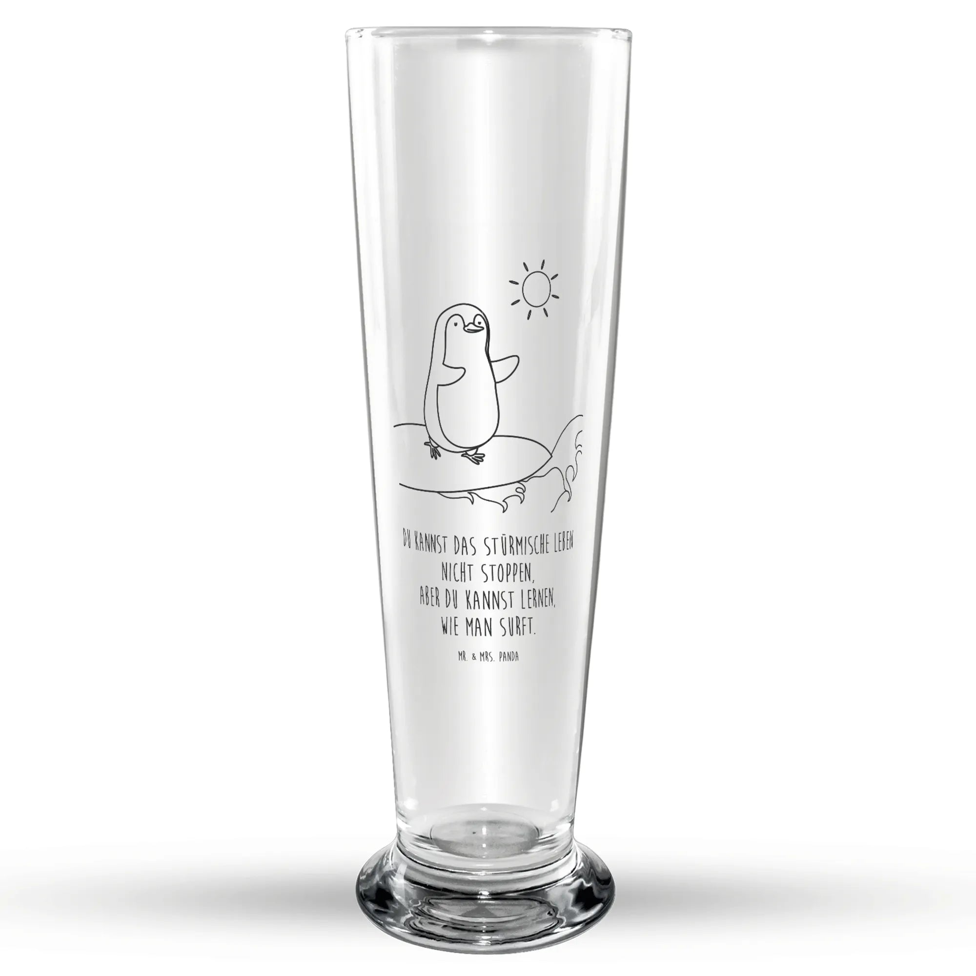 Mit unserem Weizenbierglas aus der Pinguin - Kollektion von Mr. & Mrs. Panda holst du dir den Strand nach Hause. Der charmante Pinguin Surfer reitet lässig auf seiner Welle und sorgt für gute Laune bei jedem Schluck. Perfekt für alle, die Weizenbier lieben und sich nach Sonne, Hawaii oder Portugal sehnen. 🌊🏄‍♂️