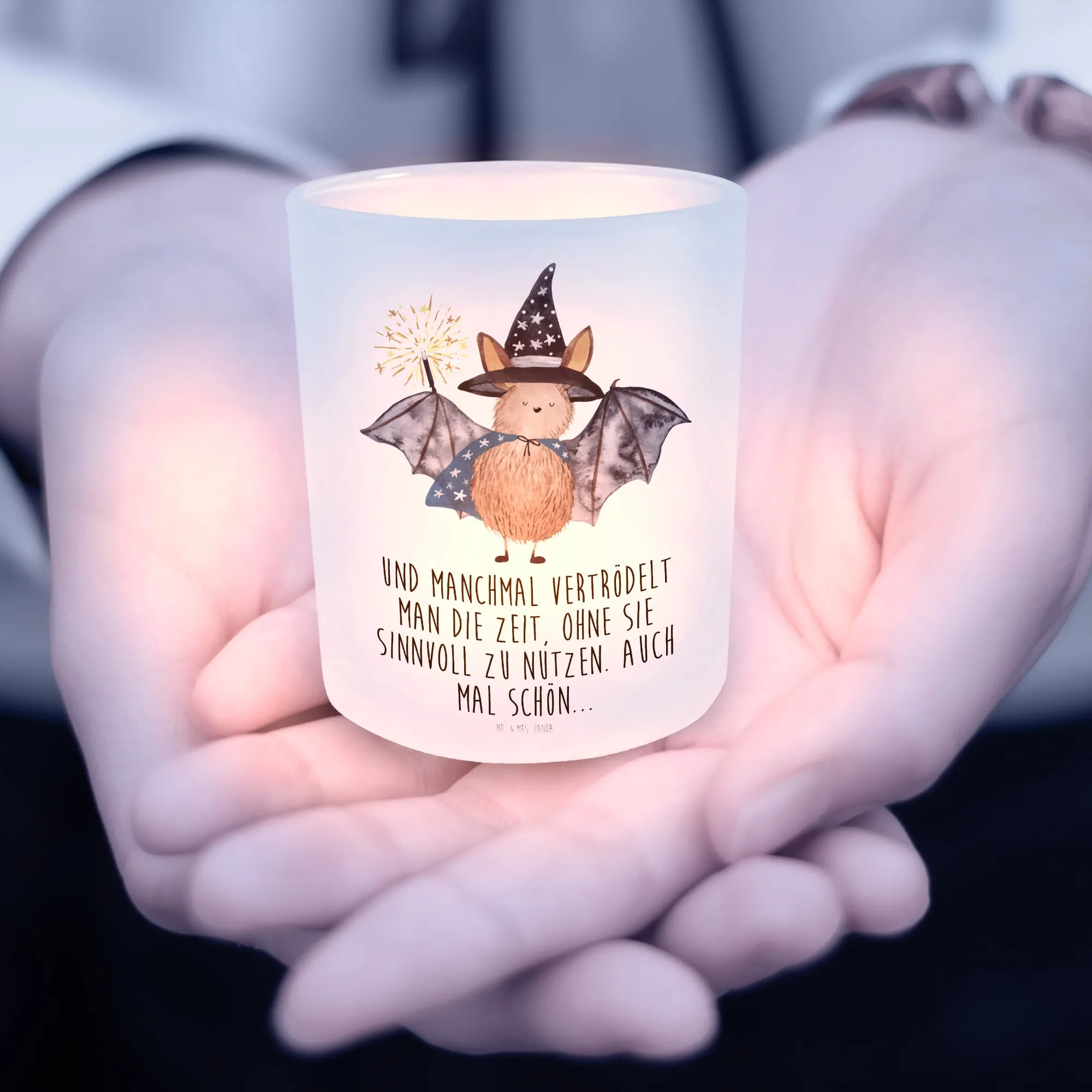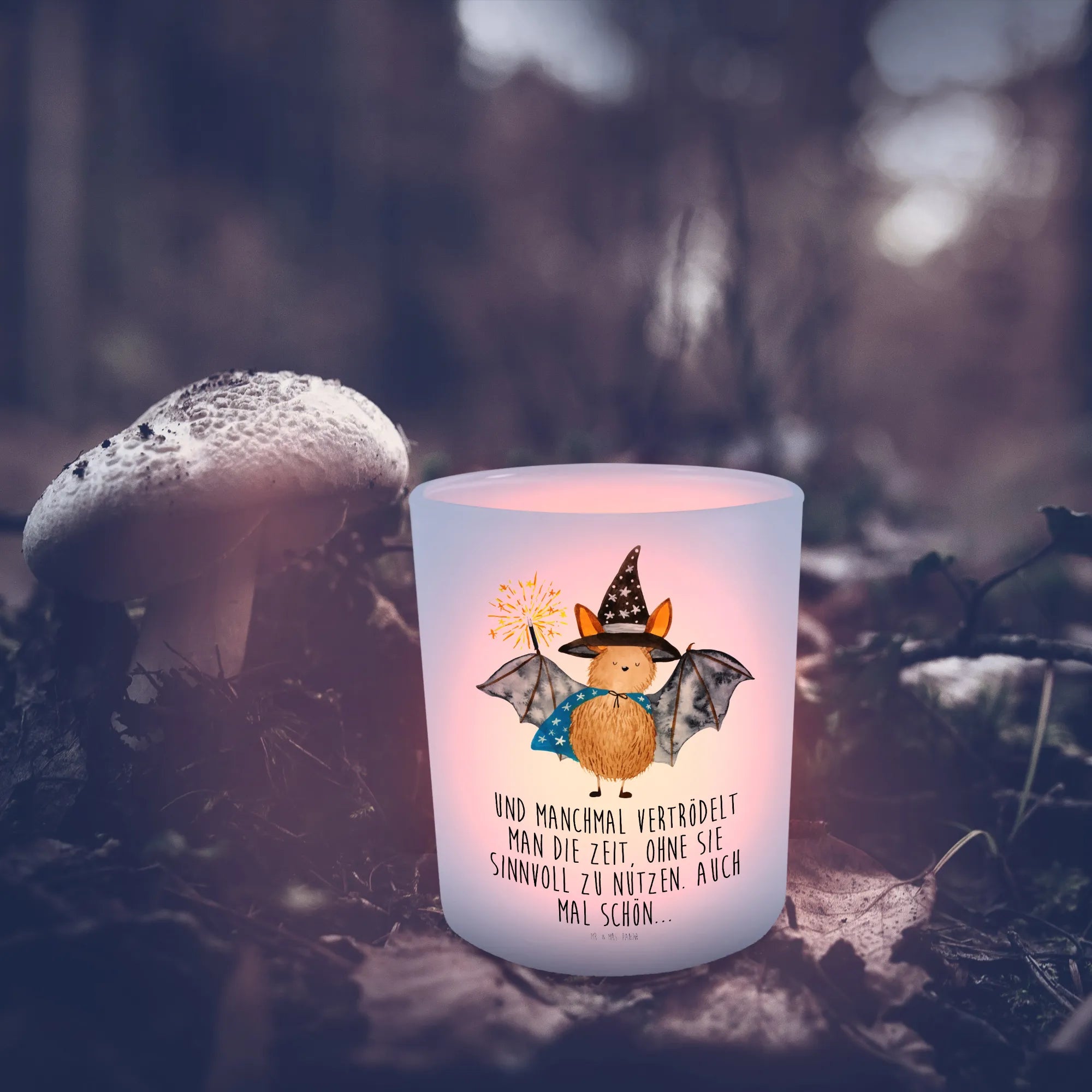 Das Windlicht Fledermaus Zauberer von Mr. & Mrs. Panda ist das perfekte Geschenk für alle, die ein Faible für Magisches und Mystisches haben! Wenn du auf der Suche nach einem einzigartigen Deko-Element bist, das nicht nur hübsch aussieht, sondern auch eine behagliche Atmosphäre schafft, bist du hier genau richtig. Dieses edle Windlicht aus satiniertem Glas wird mit einem bezaubernden Motiv einer kleinen Fledermaus geliefert, die auf einem Ast sitzt und mit einem Zauberstab in der Hand zaubert. Ideal für jeden Anlass, sei es für eine schaurig-schöne Halloween-Feier, eine Hochzeit oder einfach für dein gemütliches Zuhause. Es strahlt ein warmes Kerzenlicht aus und sorgt so für eine romantische Stimmung, die jede Nacht in etwas Besonderes verwandelt. Ob du es für dich selbst kaufst oder es als Geschenk für Freunde und Familie auswählst, dieses Windlicht wird mit Sicherheit überall für gute Laune und zahlreiche bewundernde Blicke sorgen.