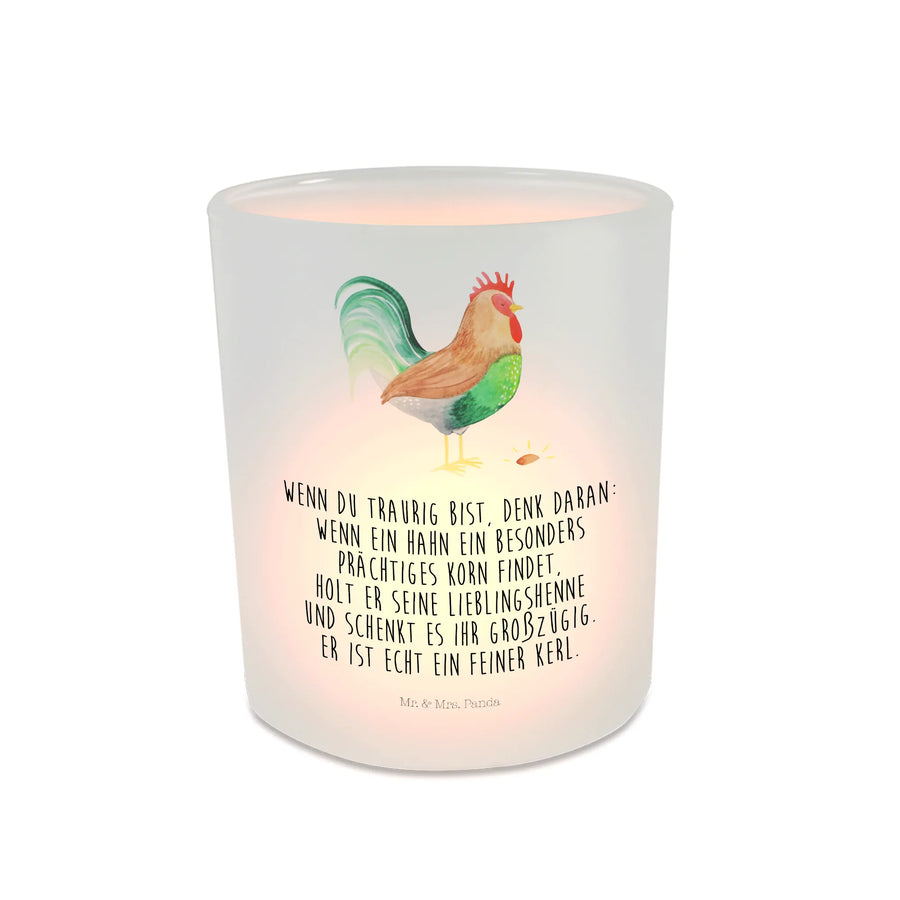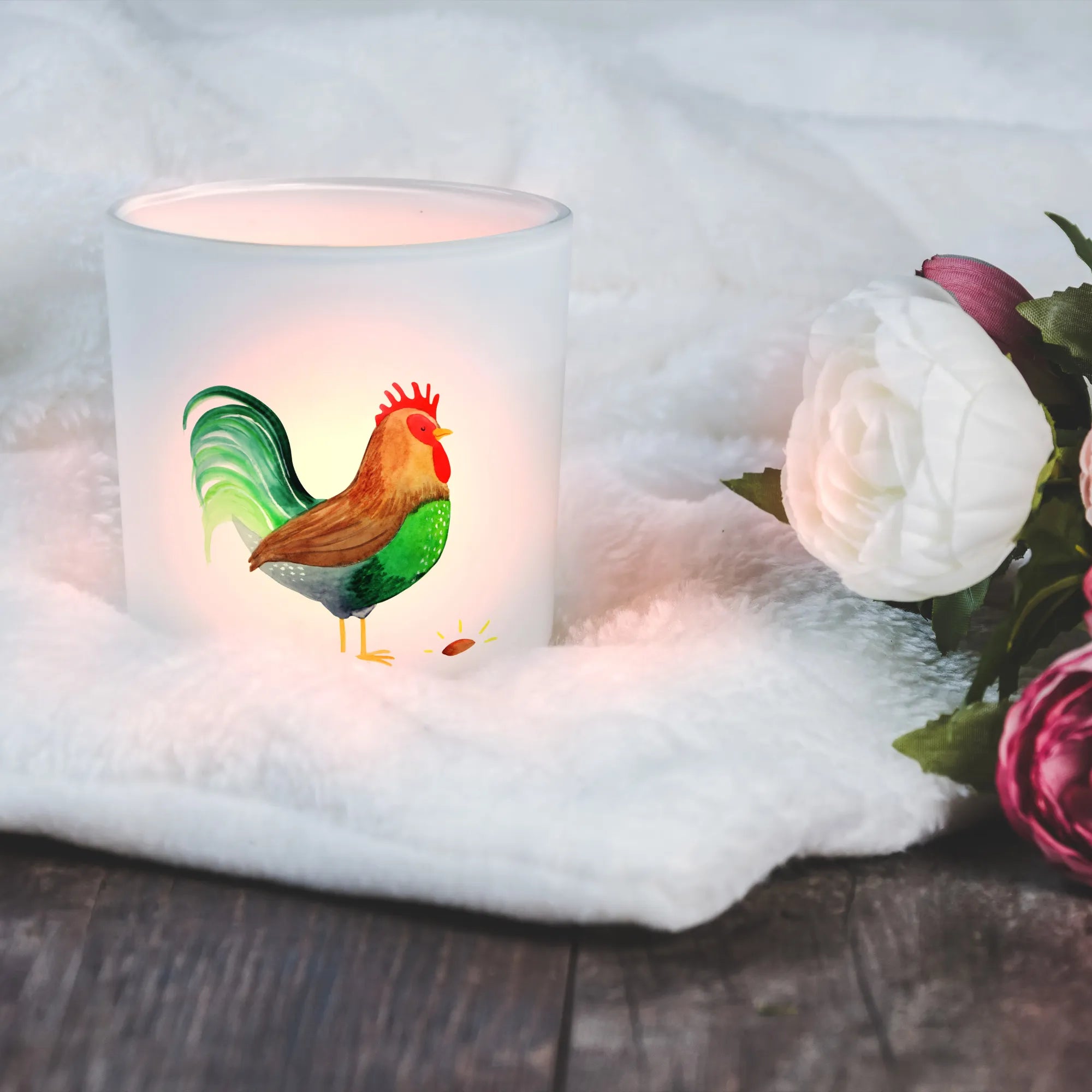 Das Windlicht "Hahn mit Korn" von Mr. & Mrs. Panda ist das perfekte Geschenk für alle, die eine Vorliebe für den Bauernhof haben oder die ländliche Idylle lieben. Mit einem stilvollen Design aus satiniertem Glas, das edel und zugleich gemütlich wirkt, ist dieses Teelichtglas ideal, um eine warme Atmosphäre zu schaffen.
