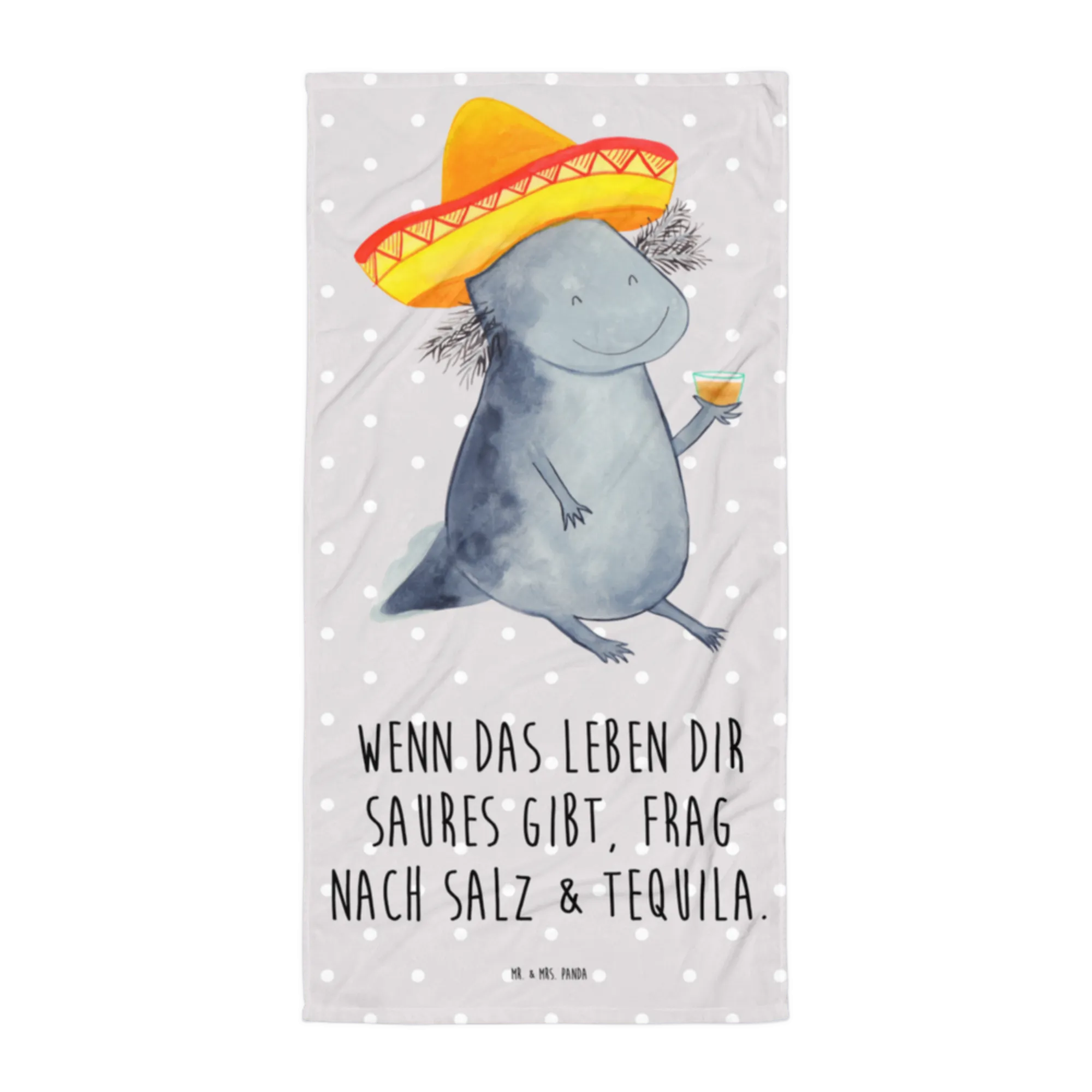 XL Badehandtuch Axolotl Tequila - mit Spruch - Grau Pastell