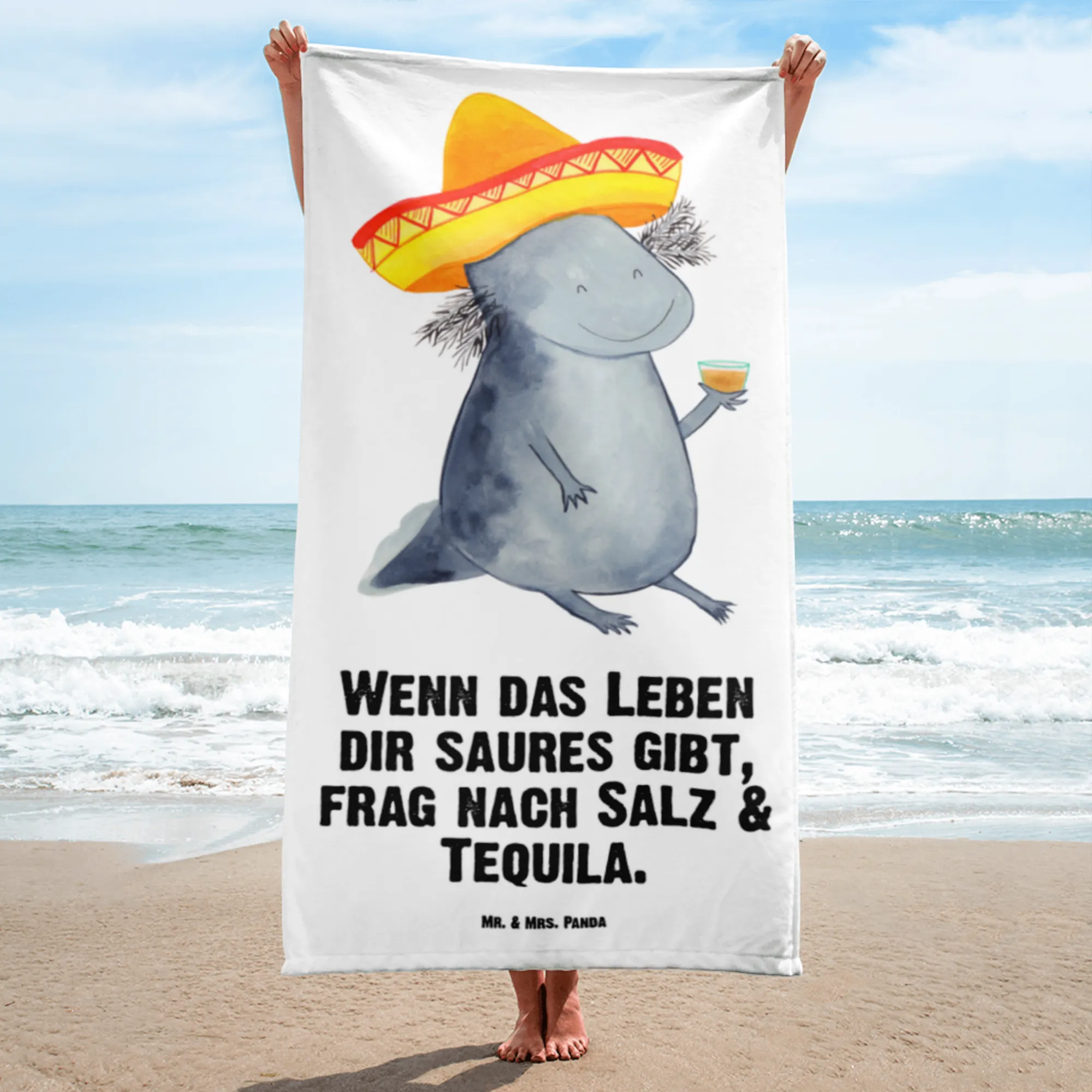 Das XL Badehandtuch mit dem bezaubernden Axolotl Tequila-Motiv von Mr. & Mrs. Panda ist das perfekte Geschenk für alle, die das Leben in vollen Zügen genießen möchten. Mit seinen lebendigen Farben und dem süßen Axolotl, der mit einem Sombrero und einem Tequila-Glas in der Hand fröhlich strahlt, bringt dieses Handtuch mexikanisches Flair direkt in dein Badezimmer oder an den Strand.