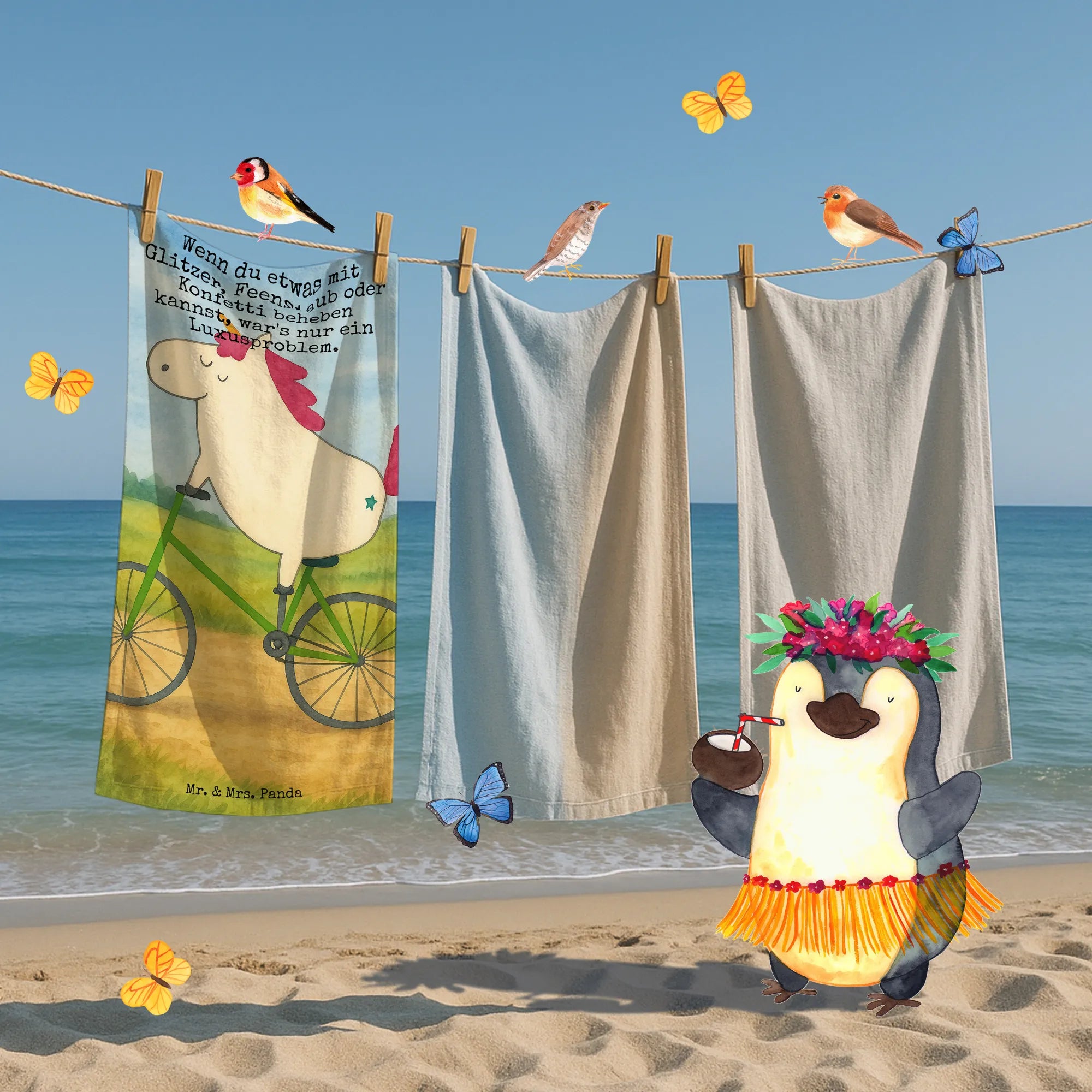 Dieses kuschelweiche Handtuch von Mr. & Mrs. Panda ist nicht nur ein Accessoire für dein Badezimmer, sondern bringt auch Freude in deinen Alltag! Mit den großzügigen Maßen von 700 mm x 1400 mm bietet es ausreichend Platz für ein entspanntes Abtrocknen nach dem Baden oder Duschen. Das Handtuch ist aus einer flauschigen Baumwollmischung gefertigt, die garantiert hautfreundlich ist. Egal ob nach einem wohltuenden Bad, beim Sport im Fitnessstudio oder beim Entspannen am Strand – mit diesem farbenfrohen Handtuch bist du bestens ausgestattet. Der brillante Druck mit süßen Motiven und Sprüchen von Mr. & Mrs. Panda macht jede Benutzung zu einem Erlebnis. Darüber hinaus ist es Maschinenwäsche bei 30°C geeignet, was die Pflege kinderleicht macht. Lass dieses bunte Handtuch zu deinem neuen Lieblingsbegleiter werden, der dir jedes Badezimmer aufhellt! Perfekt auch für deinen Urlaub oder als originelles Geschenk für Freunde und Familie.
