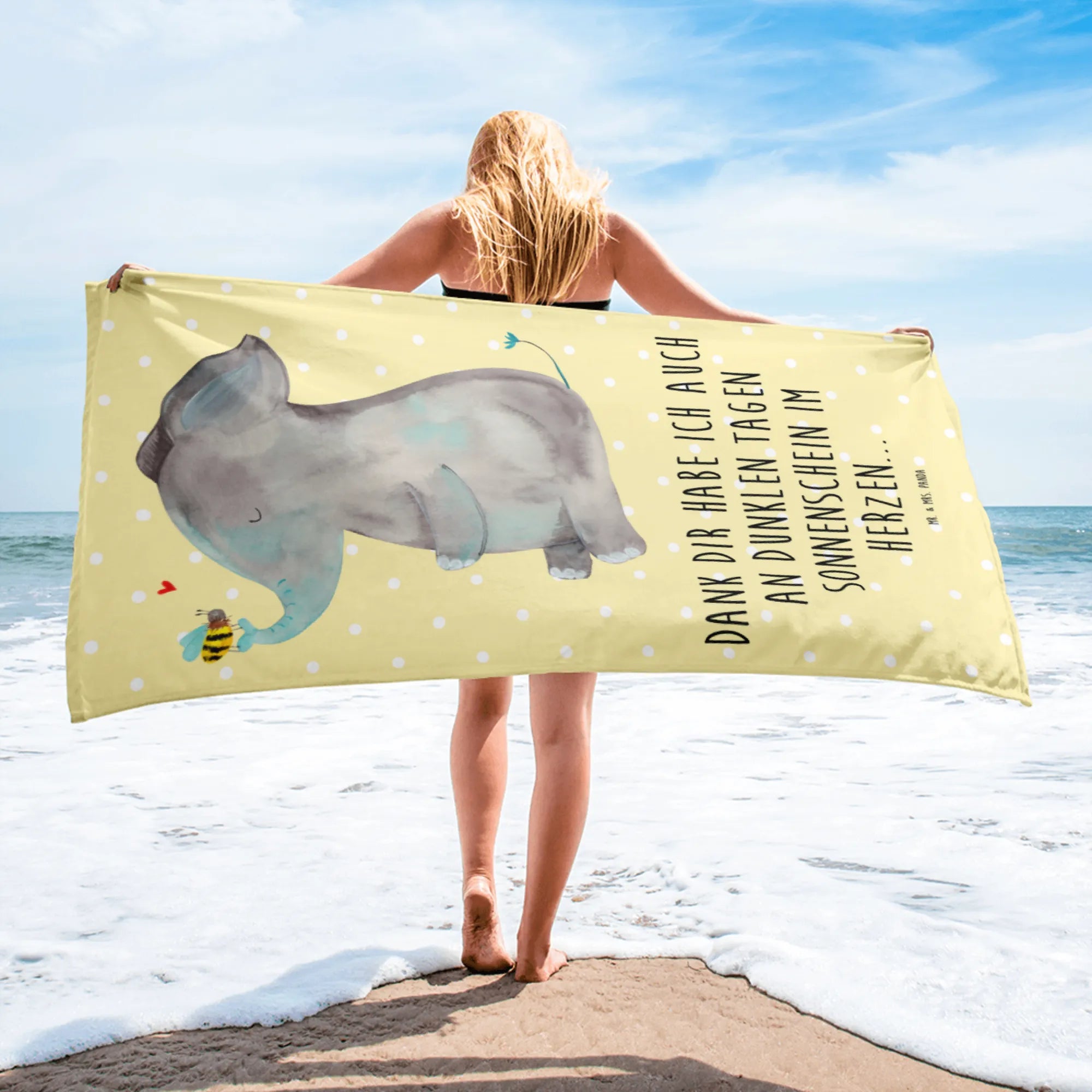 Das XL Badehandtuch mit dem süßen Motiv Elefant & Biene aus der Small World Kollektion von Mr. & Mrs. Panda ist ein wahres Must-Have für jeden Anlass!