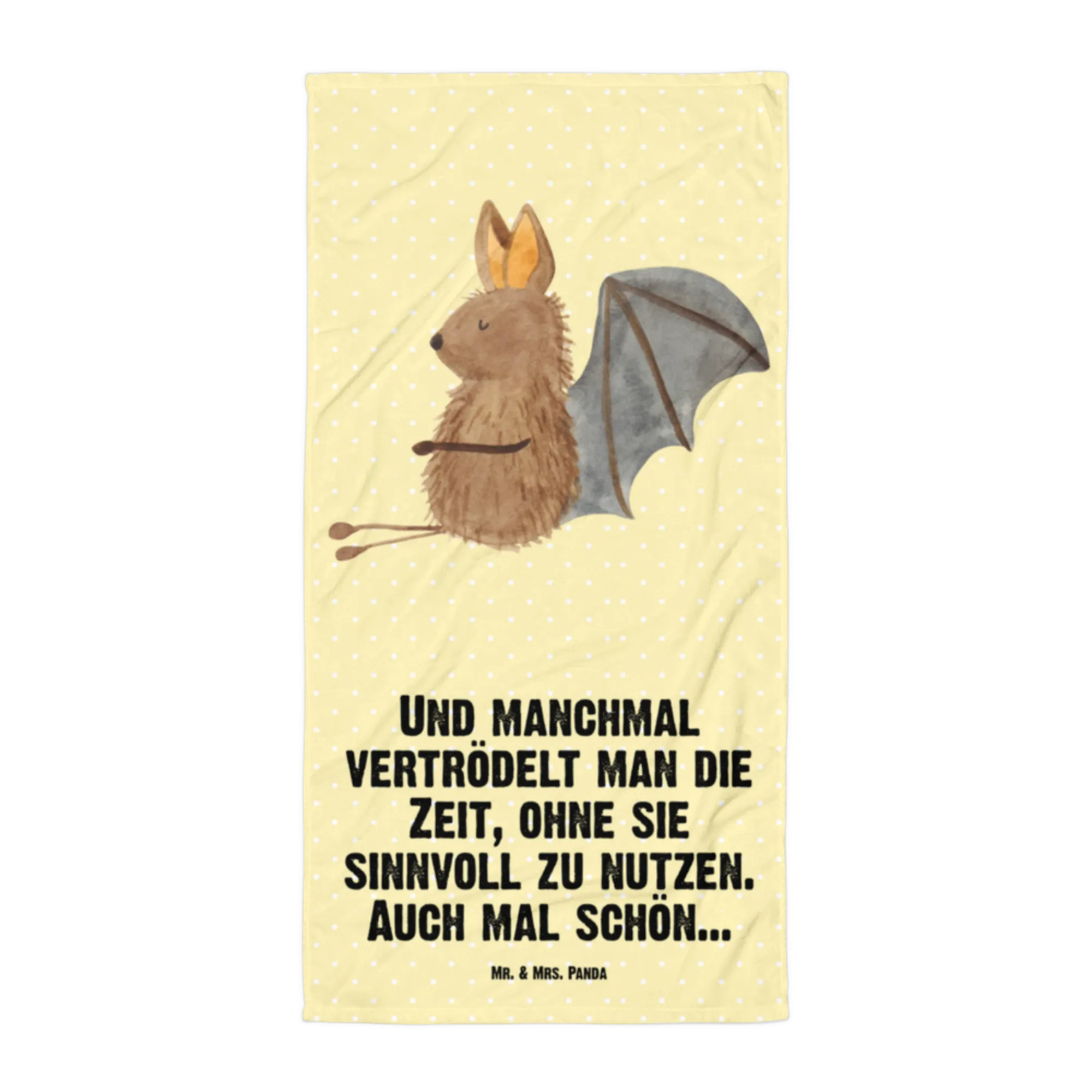 Die süße Fledermaus auf dem Handtuch ist nicht nur ein niedliches Motiv, sondern drückt auch eine positive Botschaft aus: 'Und manchmal vertrödelt man die Zeit, ohne sie sinnvoll zu nutzen. Auch mal schön...'. Dieses Handtuch ist schnell zu einem echten Blickfang bei jedem Ausflug.