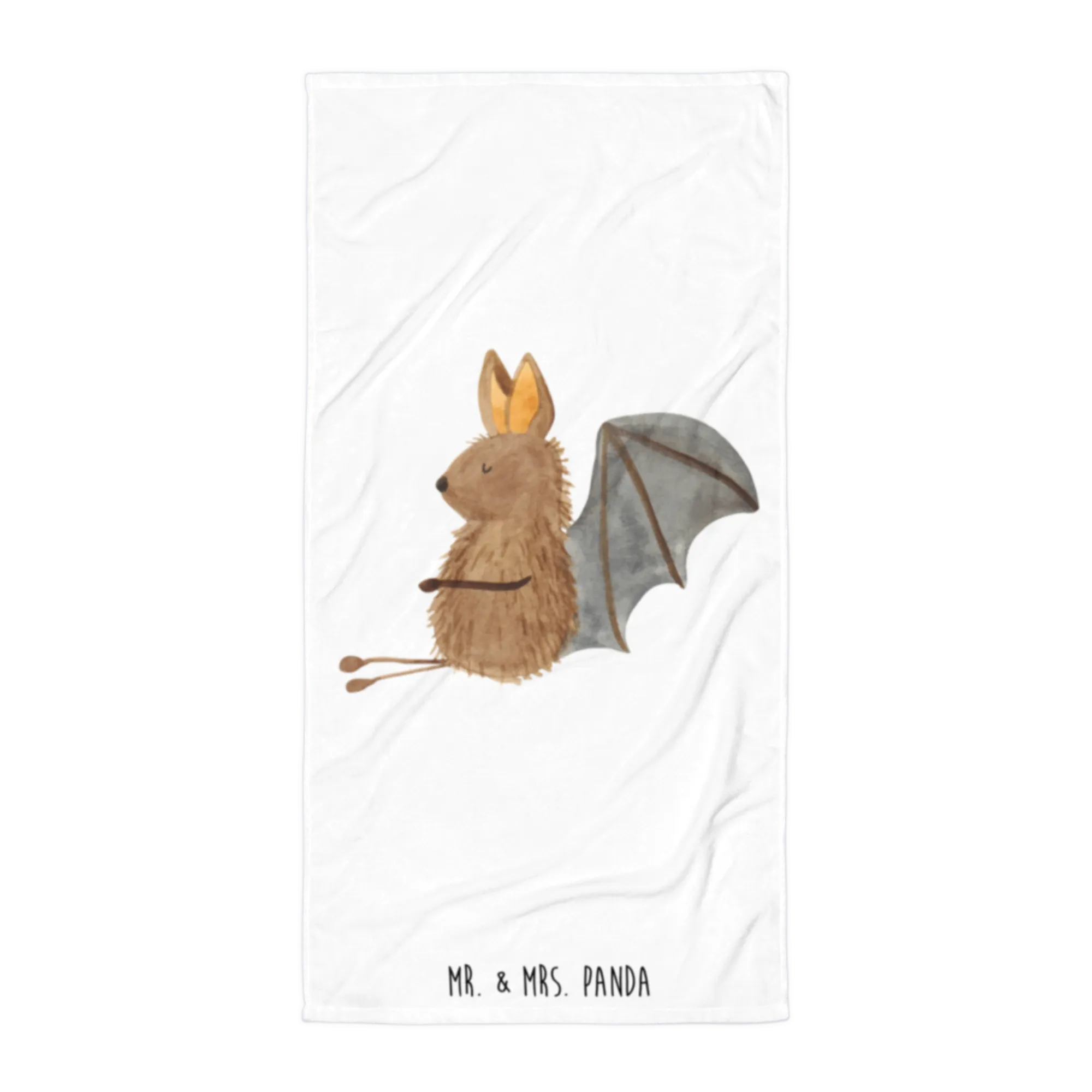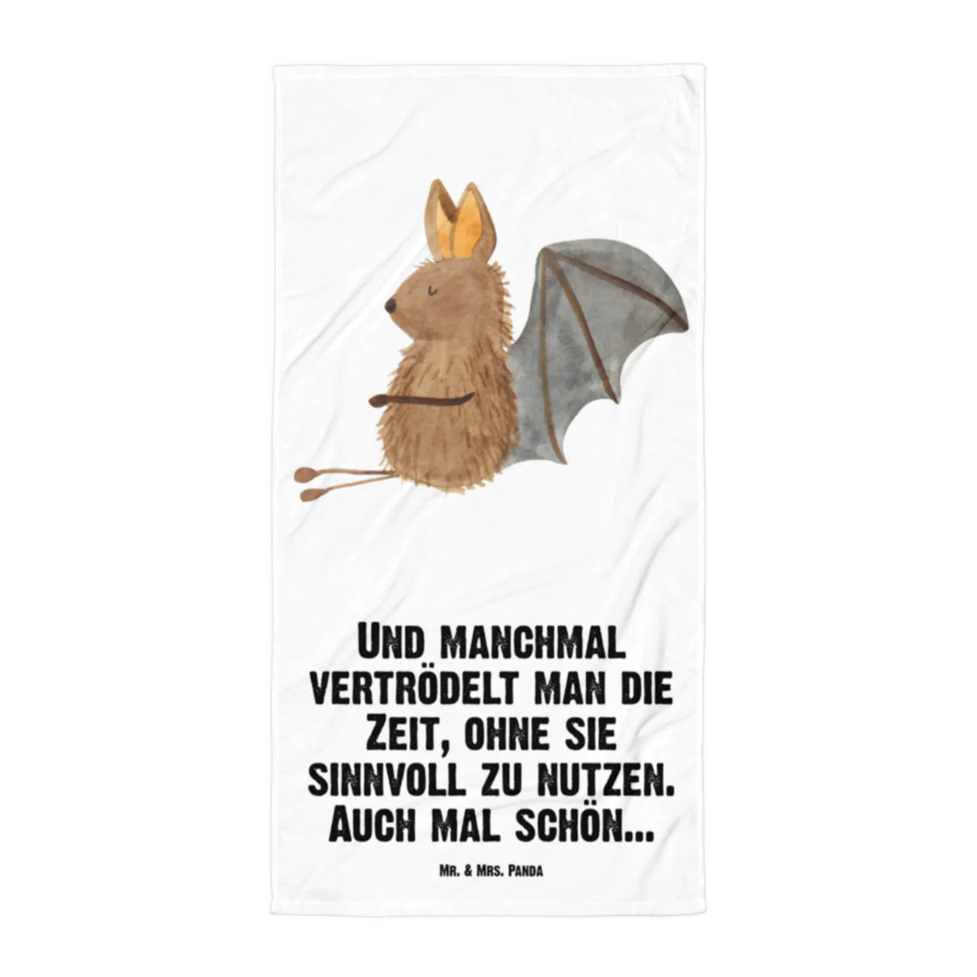 XL Badehandtuch Fledermaus Sitzen - mit Spruch - Weiß