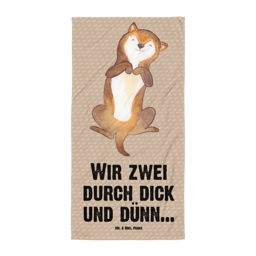 Das XL Badehandtuch "Hund Bauchkraulen" aus der Hunde Kollektion von Mr. & Mrs. Panda ist das perfekte Geschenk für Hundeliebhaber jeden Alters! 🐶 Mit seinen bunten, liebevoll gestalteten Motiven und dem strahlenden Slogan "Wir zwei durch dick und dünn..." begeistert es Tierbesitzer und bringt Freude in jeden Tag.