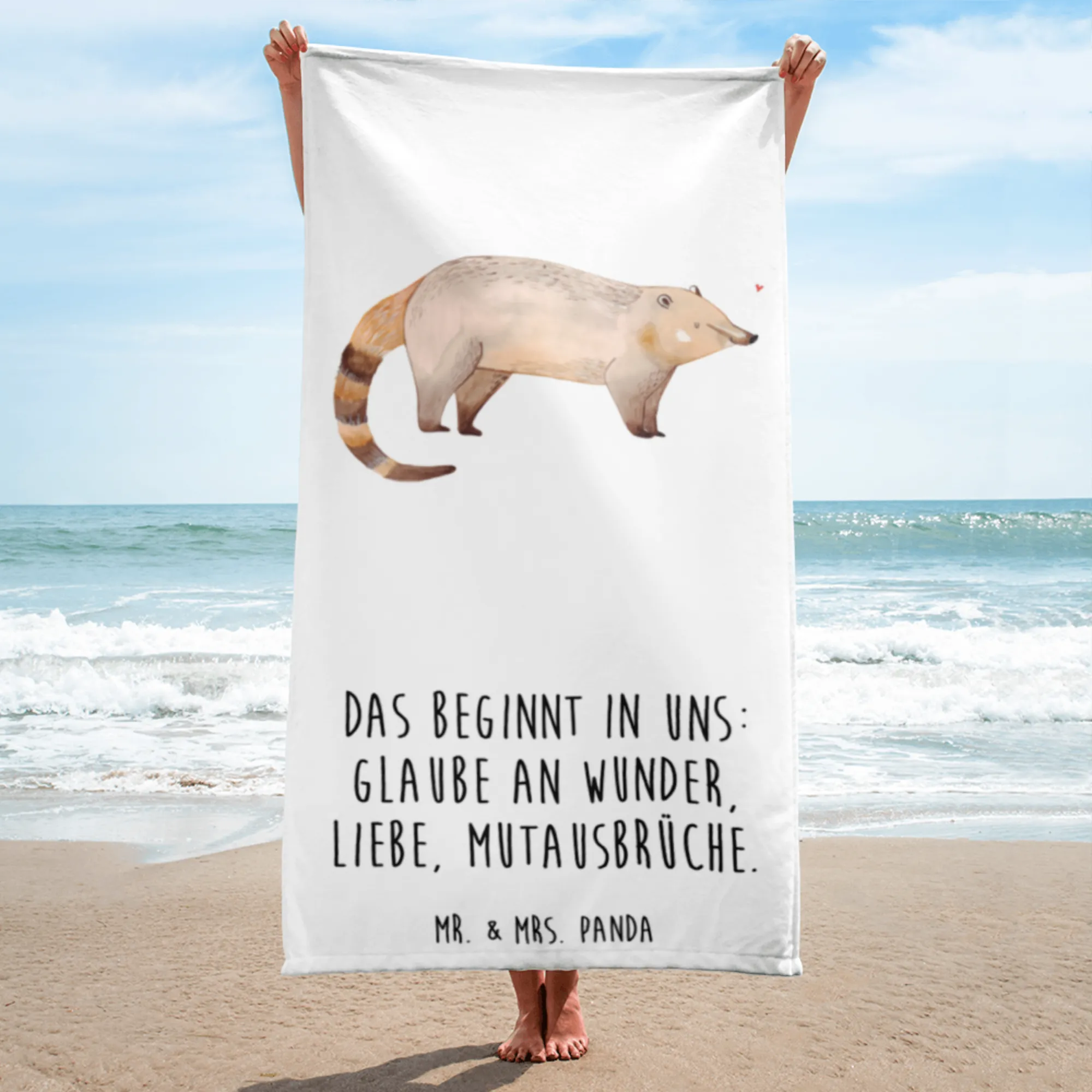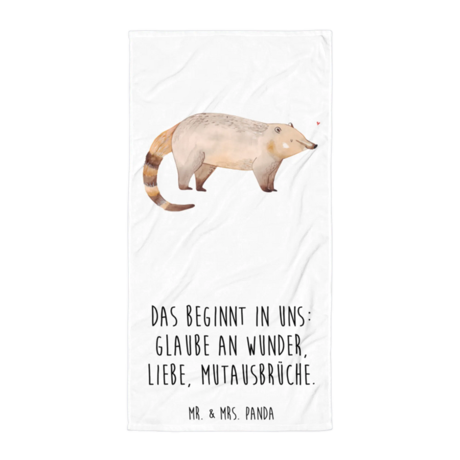 XL Badehandtuch Nasenbär - mit Spruch - Weiß