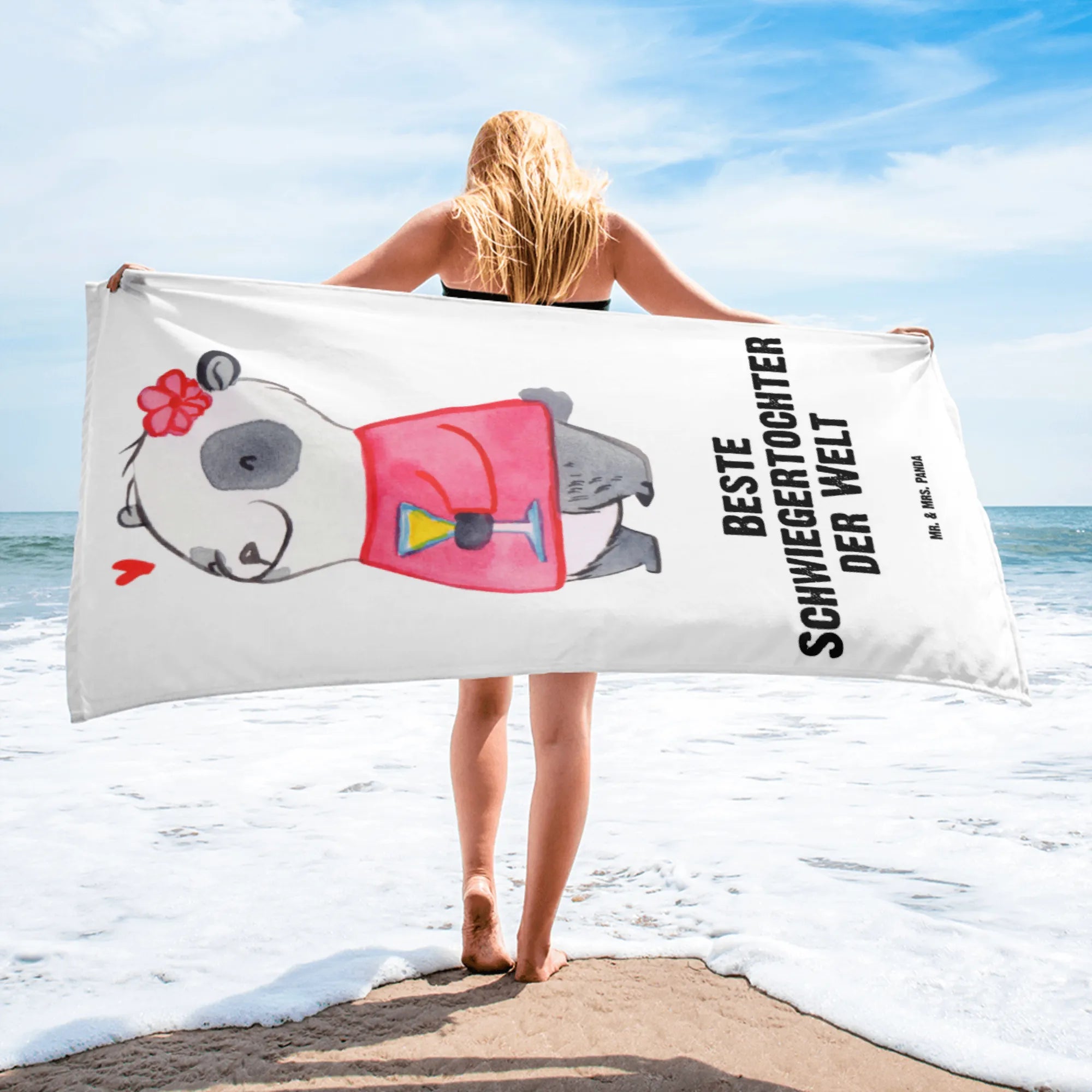 Das XL Badehandtuch mit dem süßen Motiv "Beste Schwiegertochter der Welt" von Mr. & Mrs. Panda ist das perfekte Geschenk für jede Schwiegertochter, die Du besonders schätzt. Ob zu einem besonderen Anlass wie einer Hochzeit, einem Geburtstag oder einfach nur als liebevolles Dankeschön, dieses Handtuch wird Herzen höher schlagen lassen!