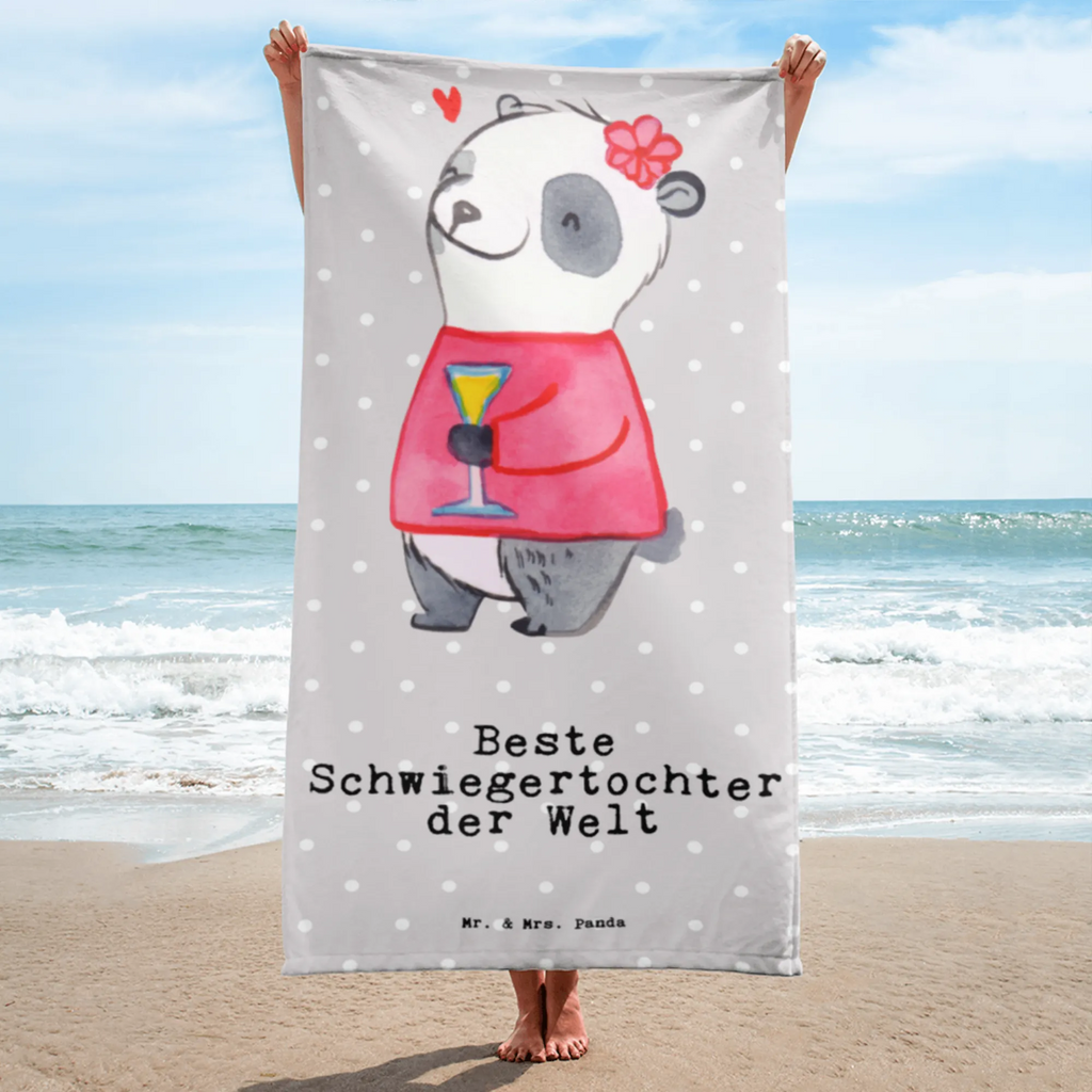 XL Badehandtuch Panda Beste Schwiegertochter der Welt - Grau Pastell