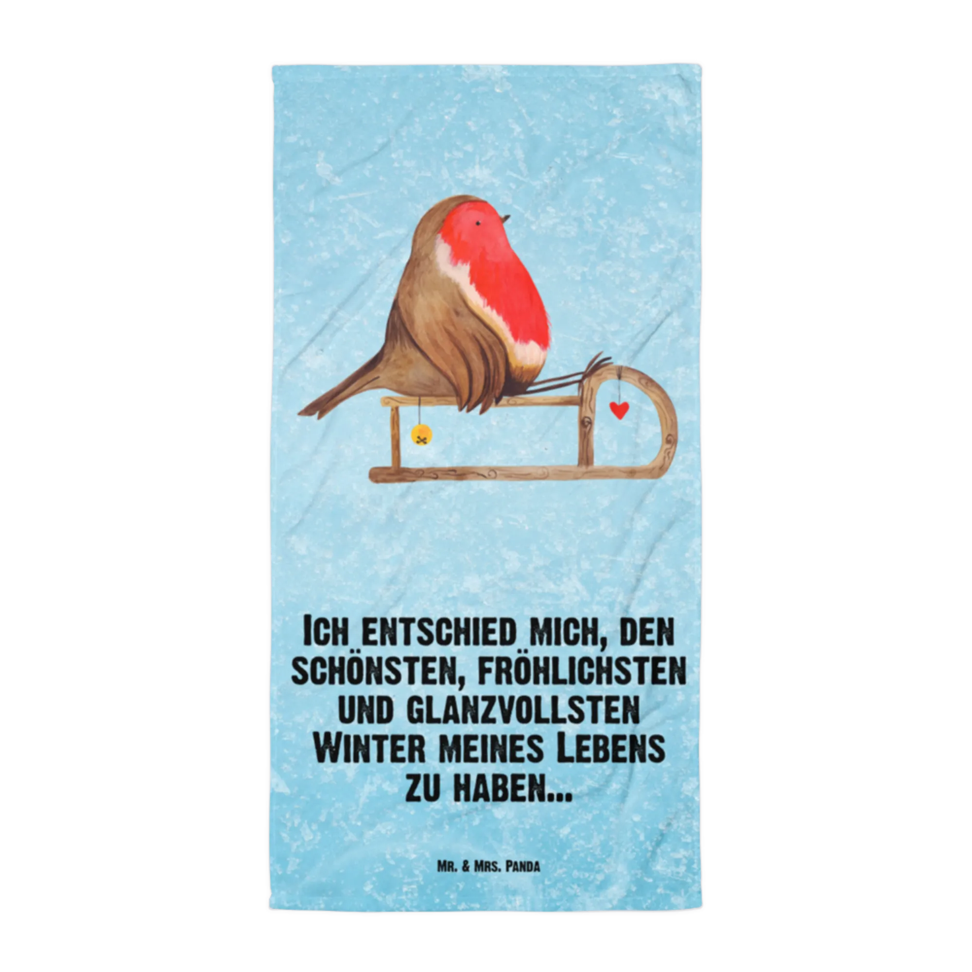 Das XL Badehandtuch "Rotkehlchen Schlitten" aus der Winter Kollektion von Mr. & Mrs. Panda ist das perfekte Geschenk für die kalte Jahreszeit! Mit seinen großzügigen Maßen von 1520 mm x 760 mm bietet es ausreichend Platz, um dich nach einem erholsamen Bad oder einem ausgedehnten Tag am Strand schön einzuhüllen.