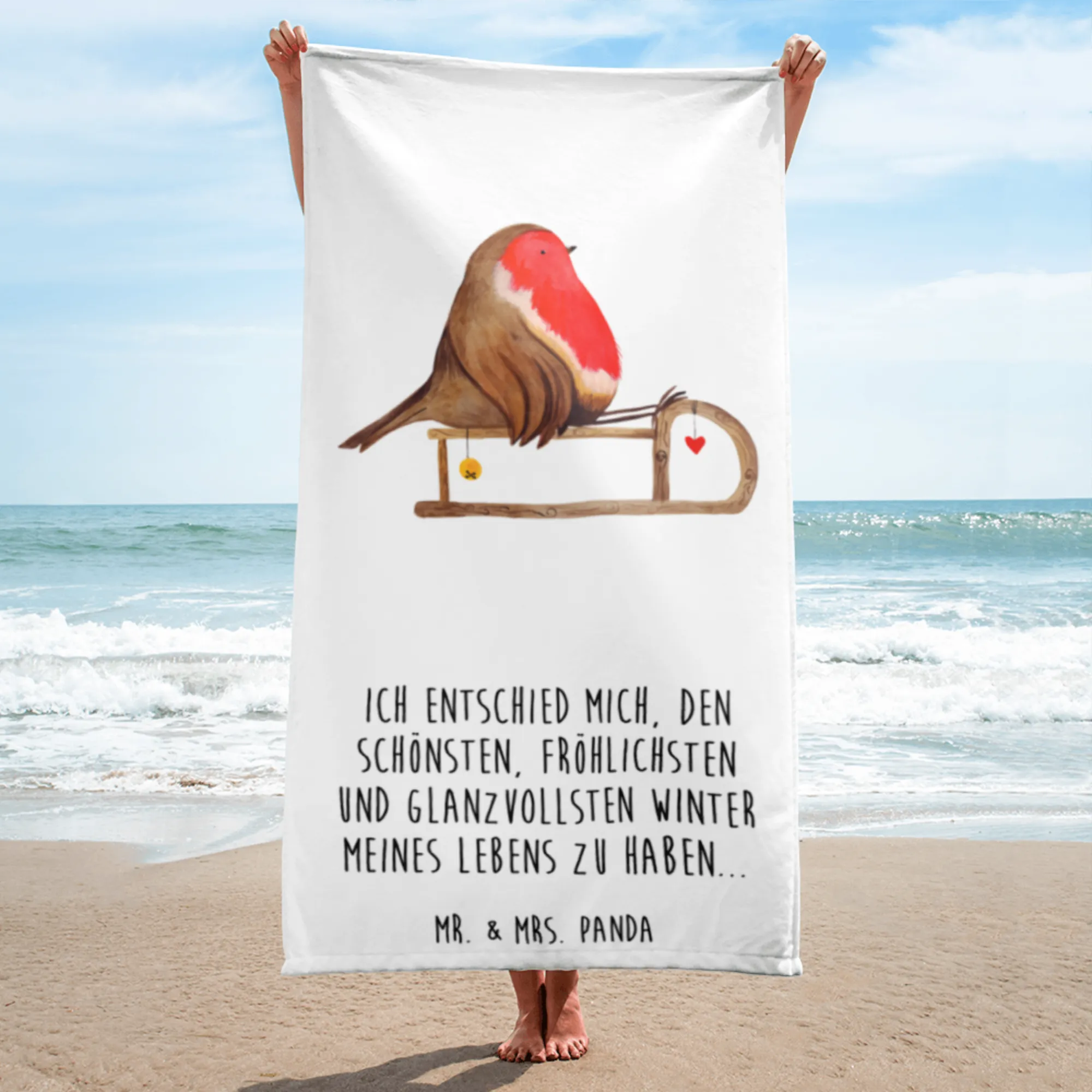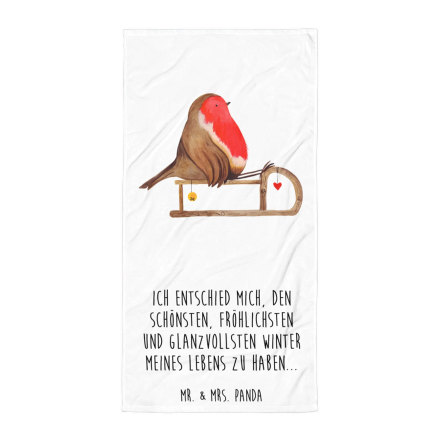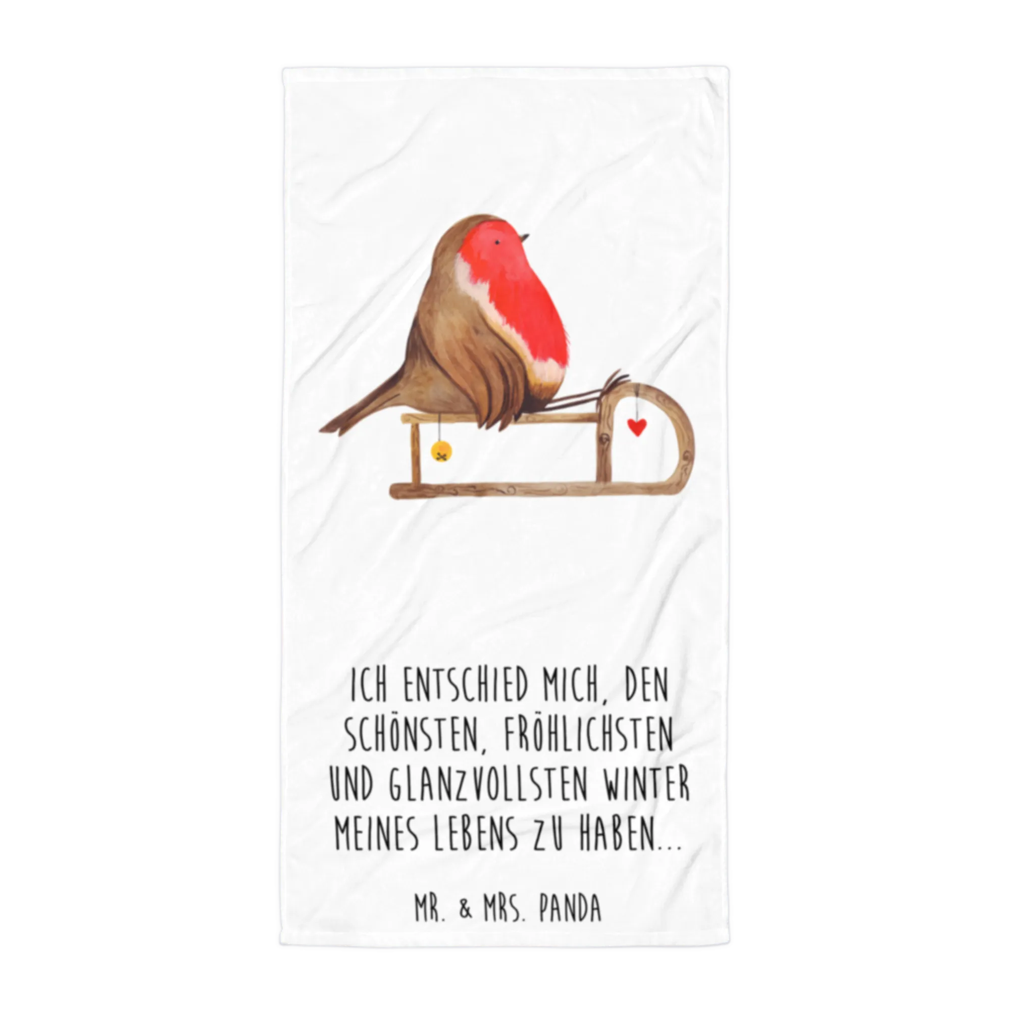 XL Badehandtuch Rotkehlchen Schlitten - mit Spruch - Weiß