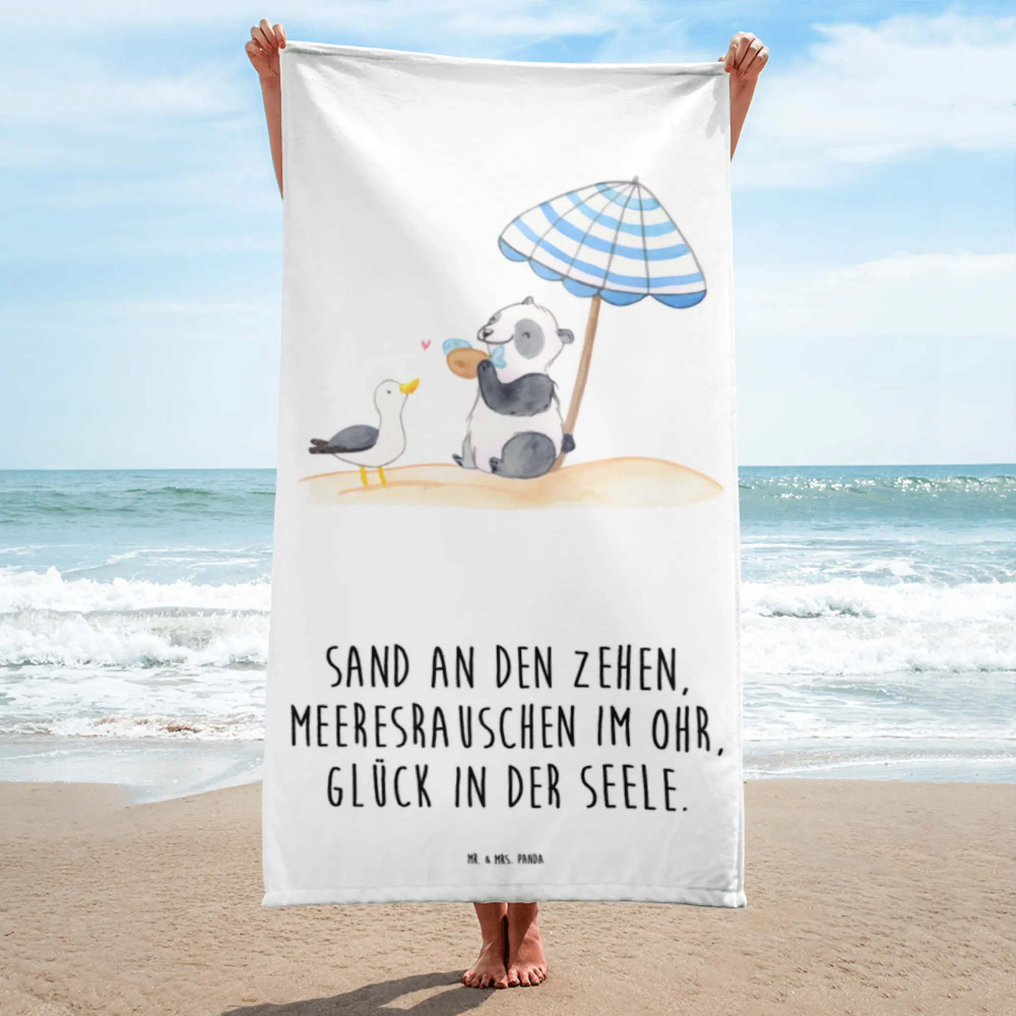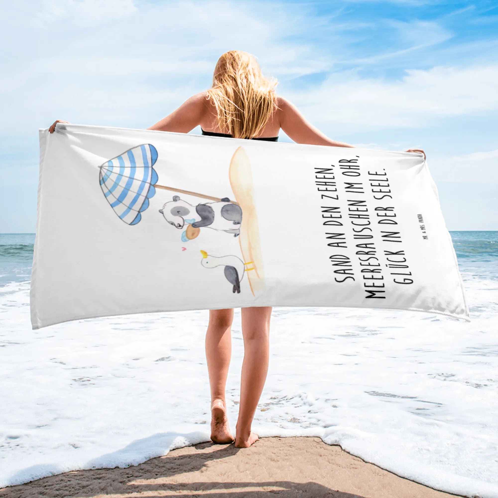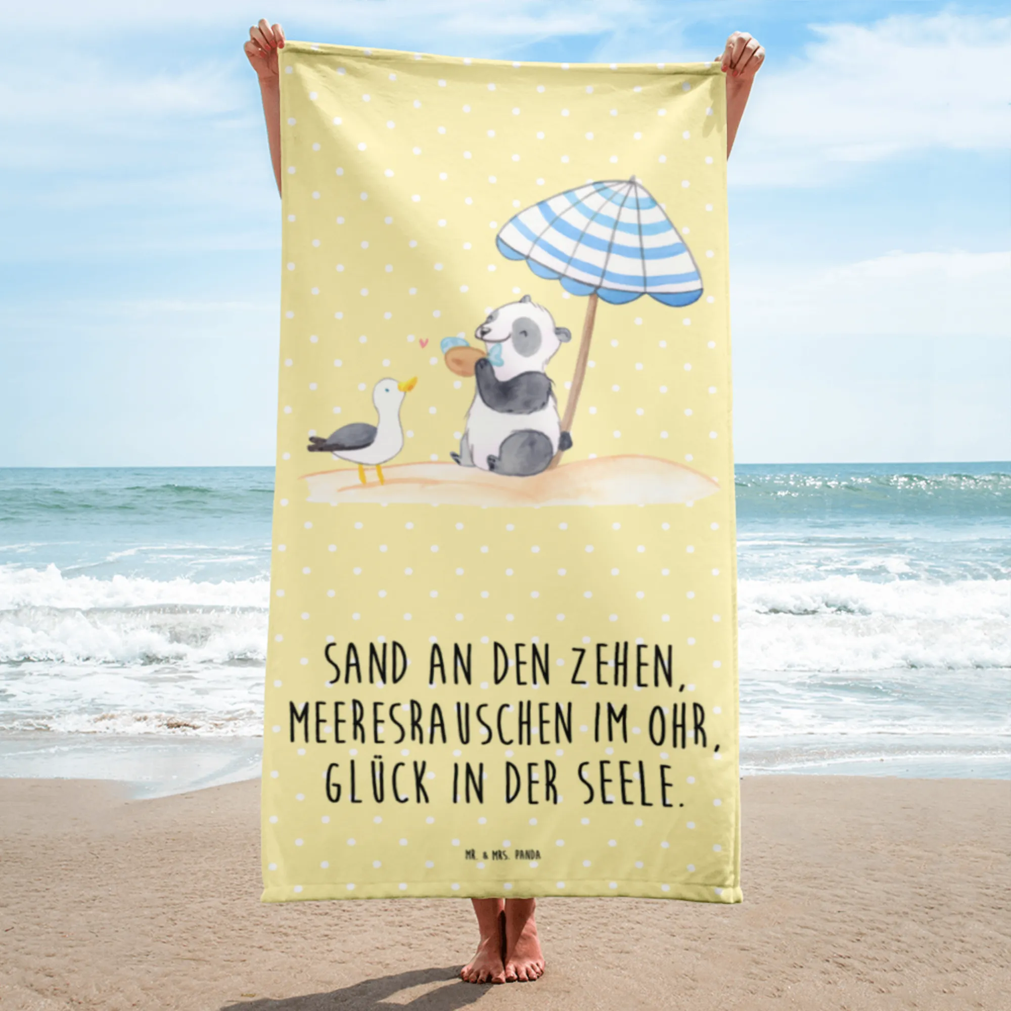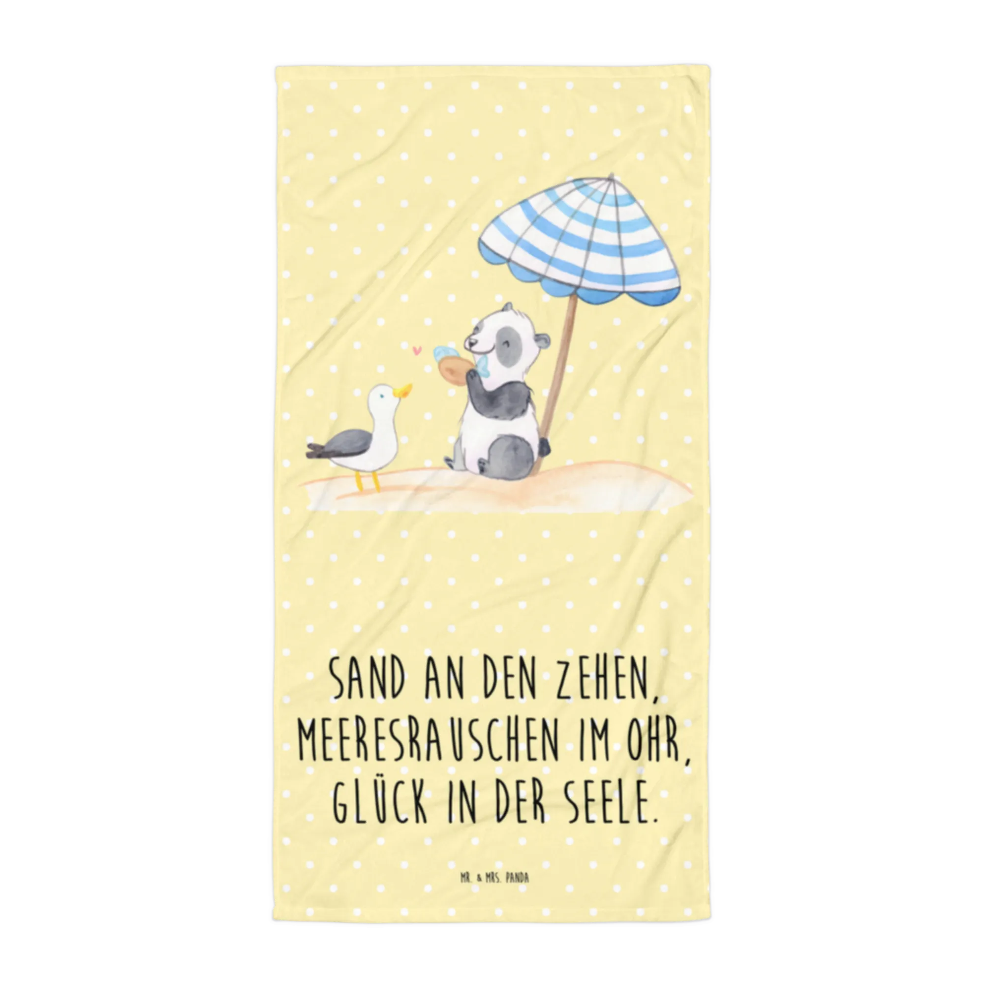 Entdecke unser XL Badehandtuch mit dem niedlichen Motiv "Sommer, Meer & Strand" aus der exklusiven Kollektion "Jahreszeiten" von Mr. & Mrs. Panda!