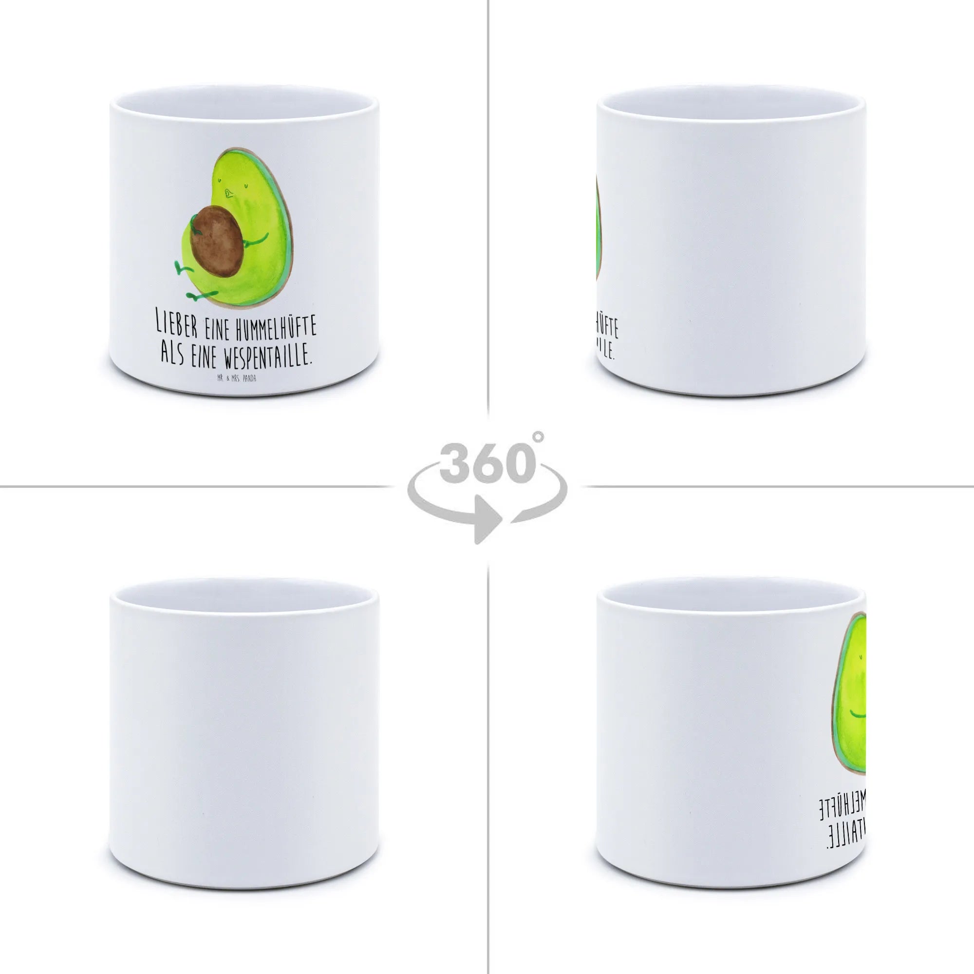 Der XL Blumentopf "Avocado pfeift" von Mr. & Mrs. Panda ist die perfekte Wahl für alle Pflanzenliebhaber und Avocado-Fans! Mit seinem charmanten Design und spritzigem Spruch 'Lieber eine Hummelhüfte als eine Wespentaille' zaubert dieser hochwertige Keramiktopf ein Lächeln auf jedes Gesicht.
