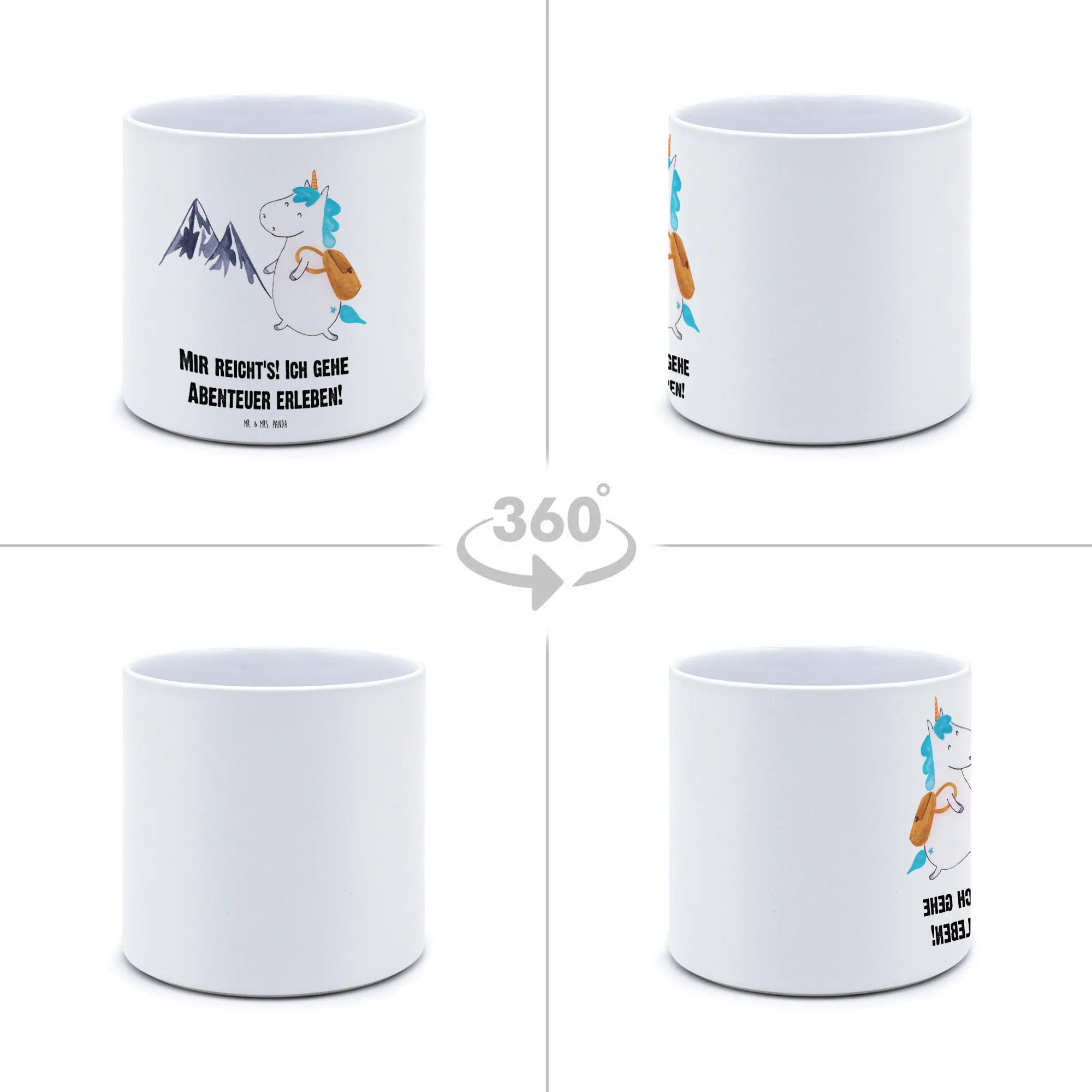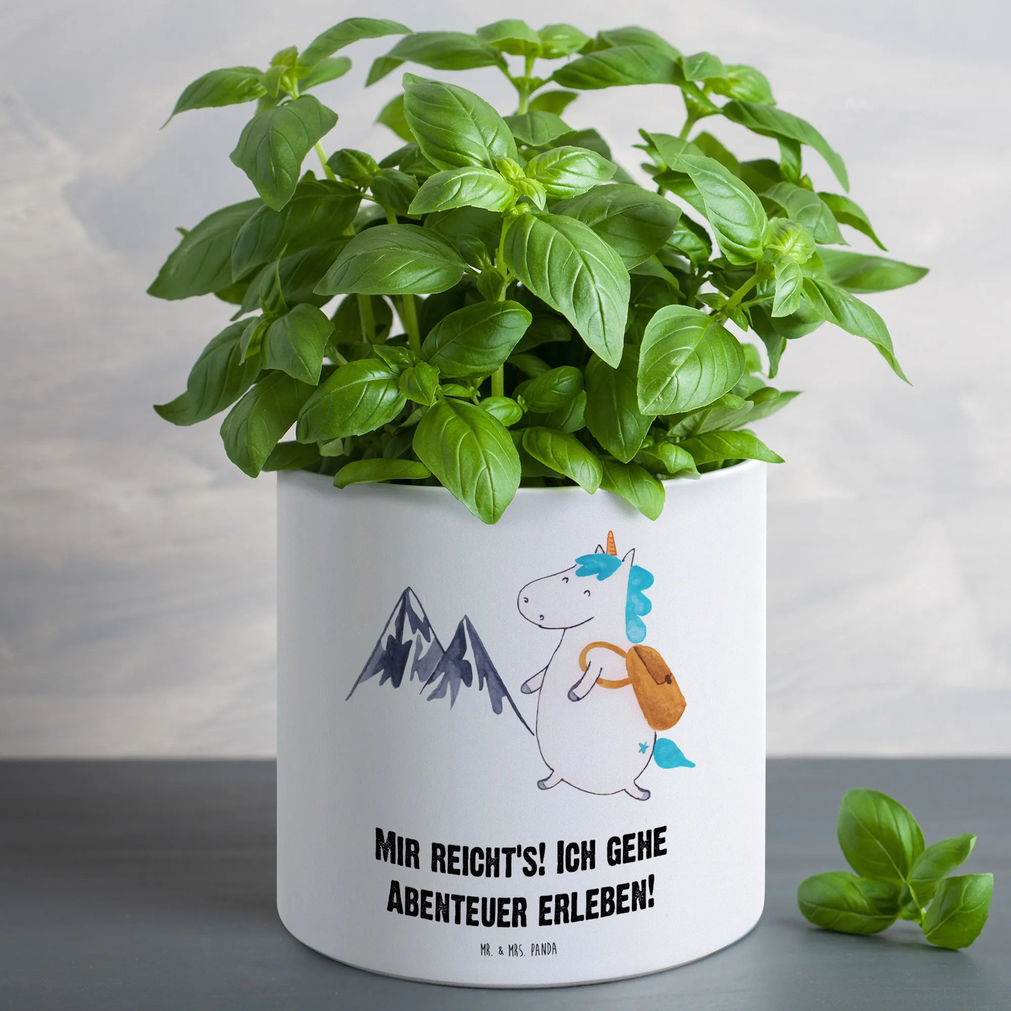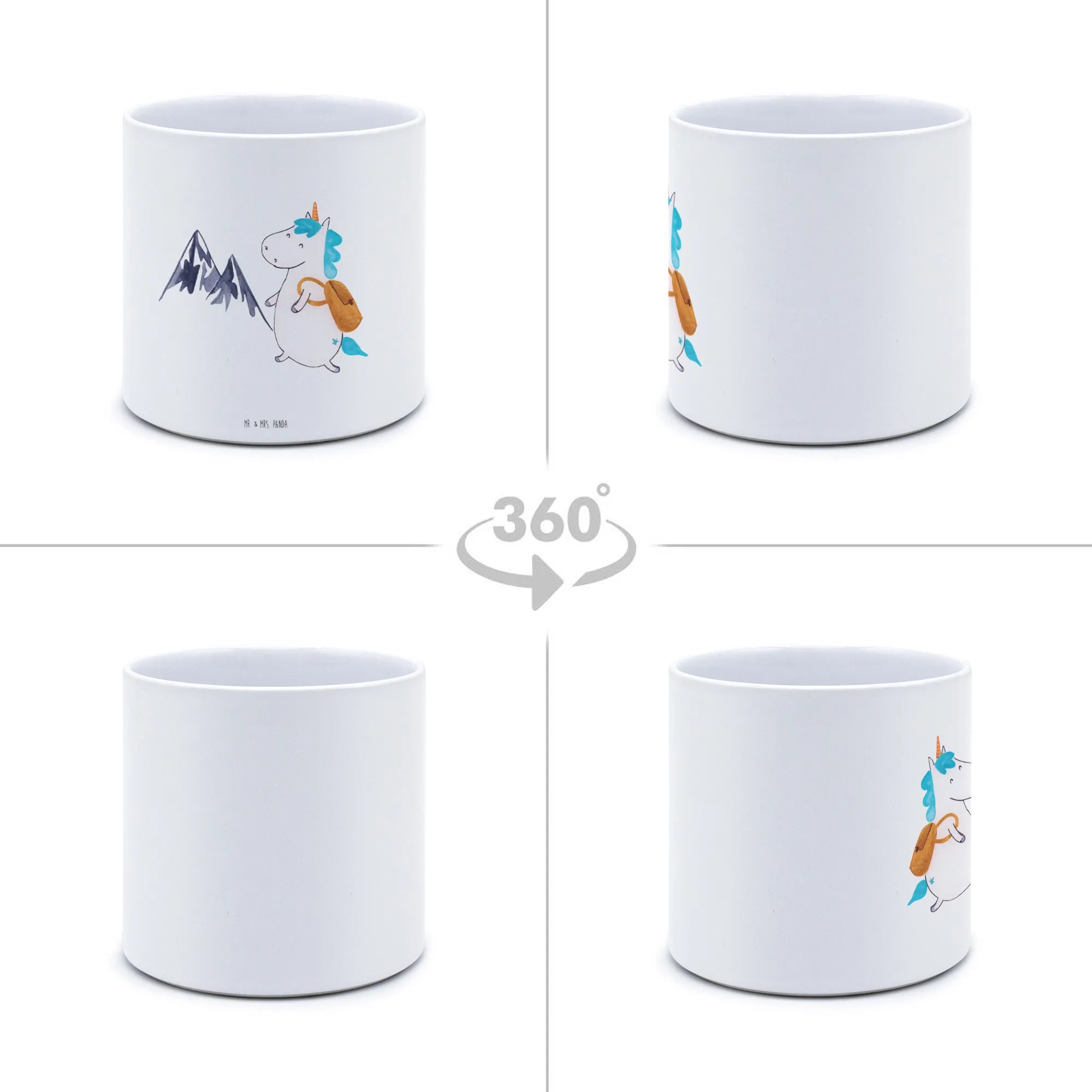 Der XL Blumentopf Einhorn Bergsteiger von Mr. & Mrs. Panda ist die perfekte Wahl für alle, die die zauberhafte Welt der Einhörner lieben und gerne Abenteuer erleben. Mit seinem liebevoll handgezeichneten Motiv eines niedlichen Einhorns, das mit einem Rucksack auf dem Weg in die Berge ist, bringt dieser kreative Pflanztopf nicht nur Farbe, sondern auch Freude in dein Zuhause.