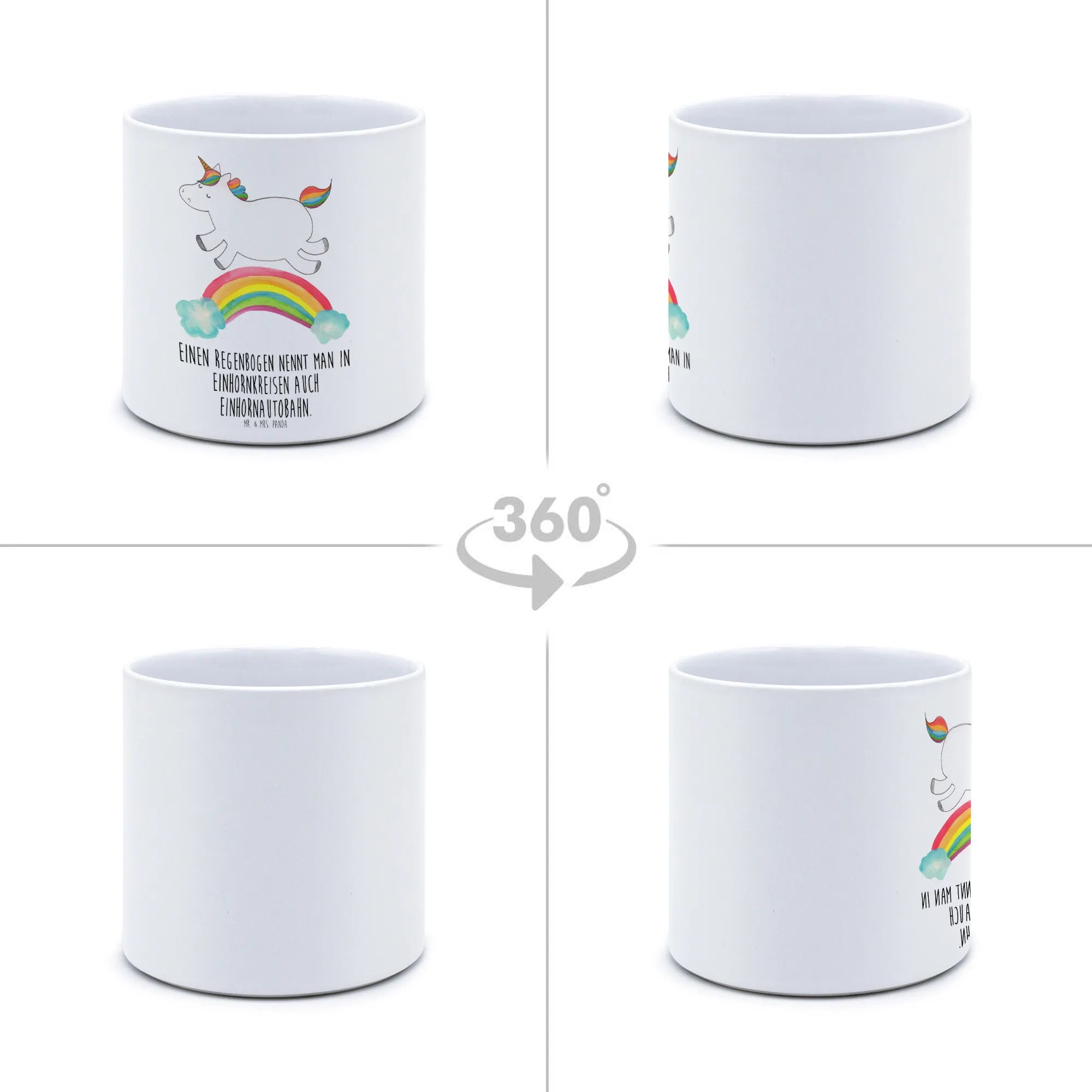 Der niedliche XL Blumentopf mit dem zauberhaften Einhorn-Regenbogen-Motiv von Mr. & Mrs. Panda ist das perfekte Geschenk für alle Einhorn-Liebhaber und Pflanzenfreunde! Ob Geburtstag, Einweihung oder einfach nur so, dieser Blumentopf bringt Farbe und Freude in jedem Zuhause.