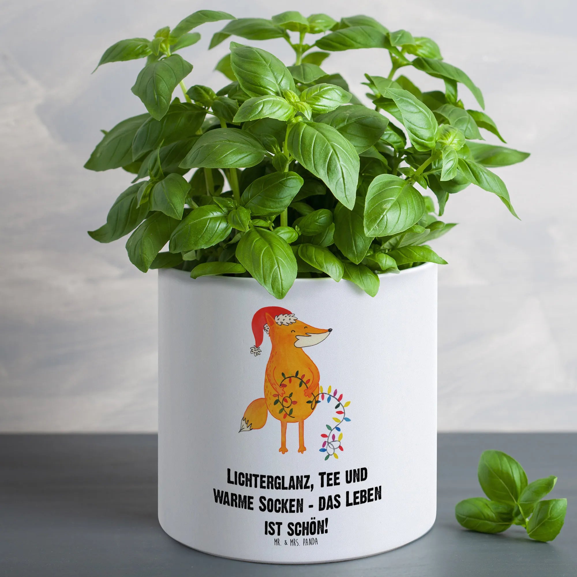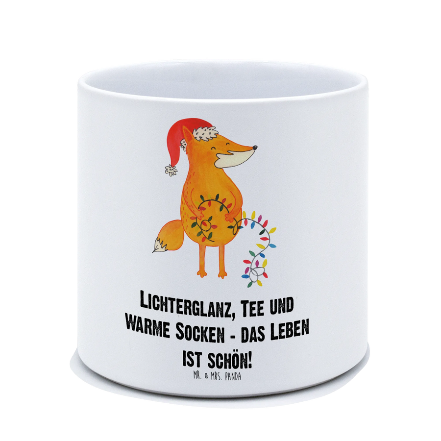 Der XL Blumentopf mit dem zauberhaften Motiv ", Fuchs Weihnachten" aus der Winter Kollektion von Mr. & Mrs. Panda ist der perfekte Begleiter für die festliche Saison. Jedes Detail dieses einzigartigen Keramiktopfes wurde mit Liebe zum Detail handgezeichnet. Der freudig lächelnde Fuchs mit seiner festlichen Weihnachtsmütze und der bunten Lichterkette bringt sofort Weihnachtsstimmung in jedes Zuhause und ist die perfekte Ergänzung für deine Weihnachtsdeko.