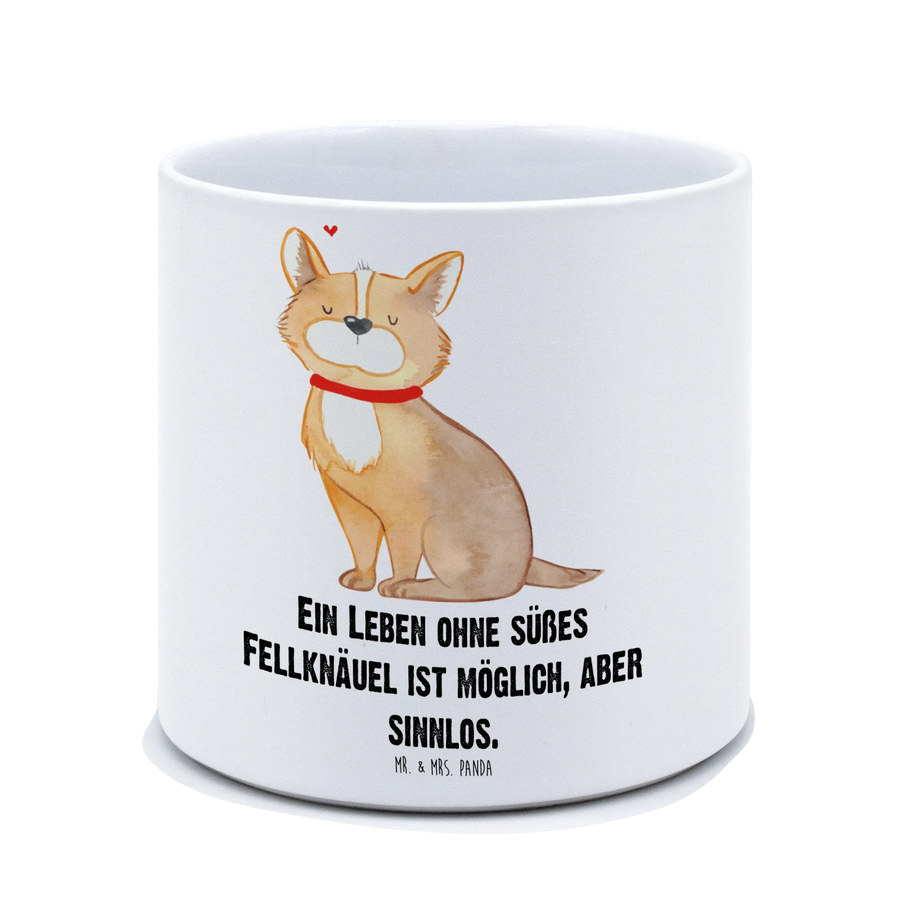 Der XL Blumentopf "Hundeglück" von Mr. & Mrs. Panda ist die perfekte Wahl für alle Hundeliebhaber, die ihren grünen Daumen zum Ausdruck bringen wollen! Mit einem fröhlichen Hundemotiv und dem liebevollen Spruch "Ein Leben ohne süßes Fellknäuel ist möglich, aber sinnlos", bringt dieser Keramiktopf nicht nur Farbe in dein Zuhause, sondern auch ein Lächeln auf dein Gesicht.